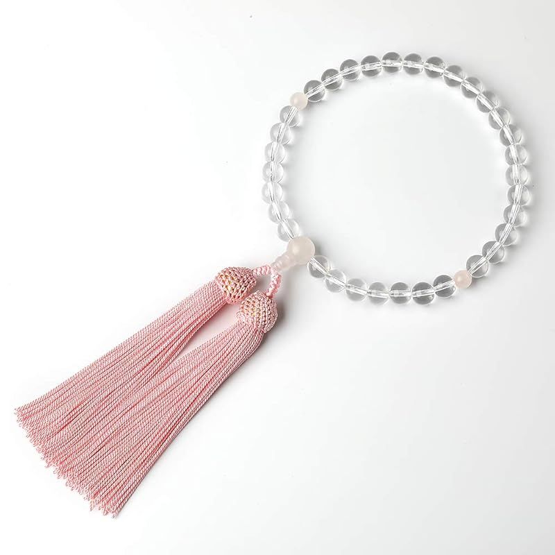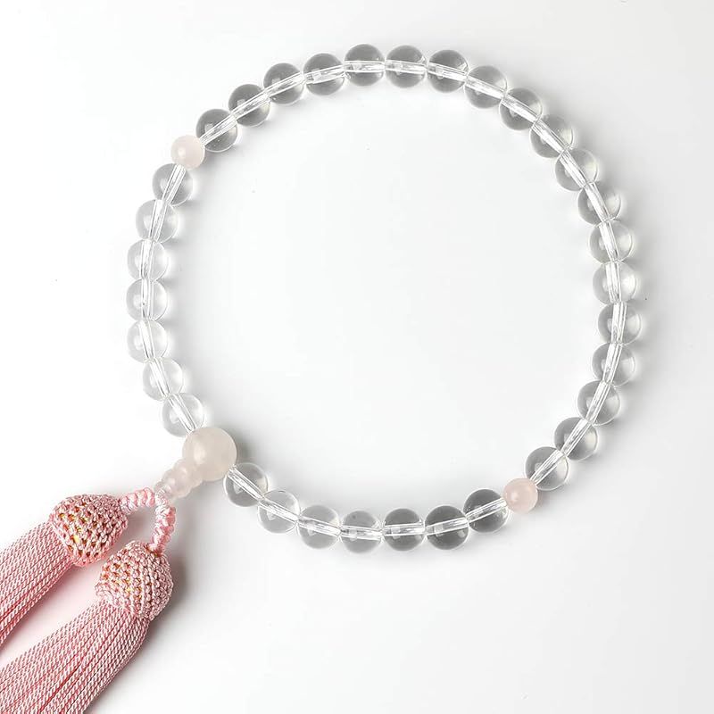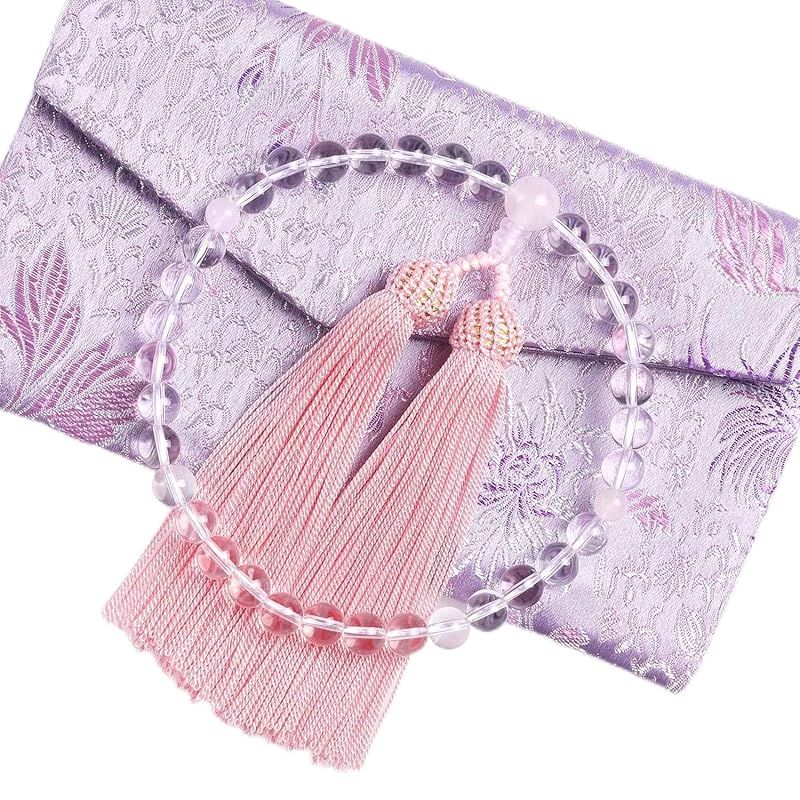 LEOBEE 数珠 念珠 女性用 本水晶 紅水晶(ローズクォーツ) マグネット式数珠袋付き 全ての宗派でお使い頂けます 0