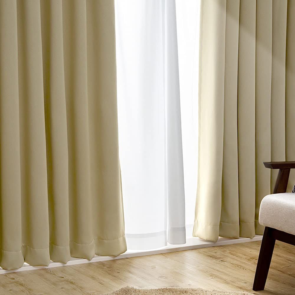 【数量限定】タッセル付き しっかり厚手 1級遮光 節電&省エネに 幅100×丈210cm 断熱/防寒 遮光度99.99%カーテン 洗濯機OK PLAZA) 2枚組 アイリスプラザ(IRIS ベージュ