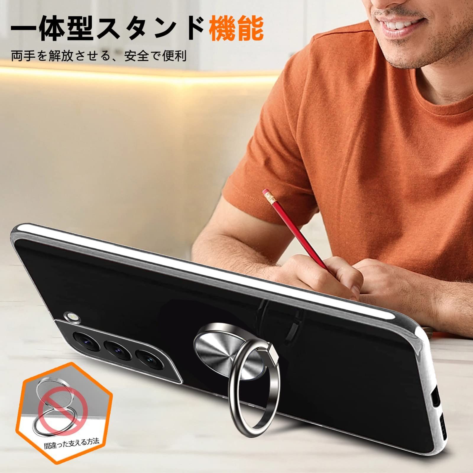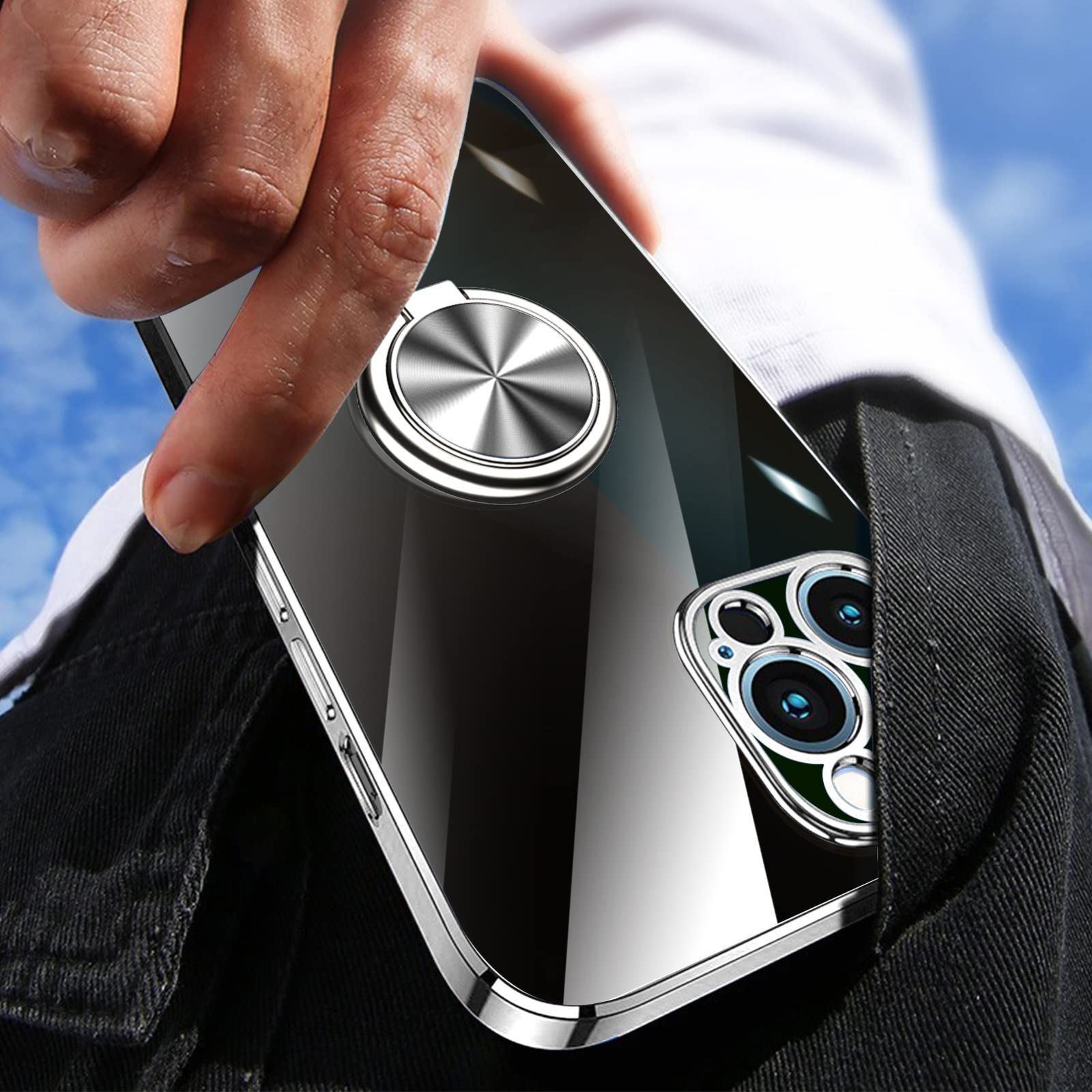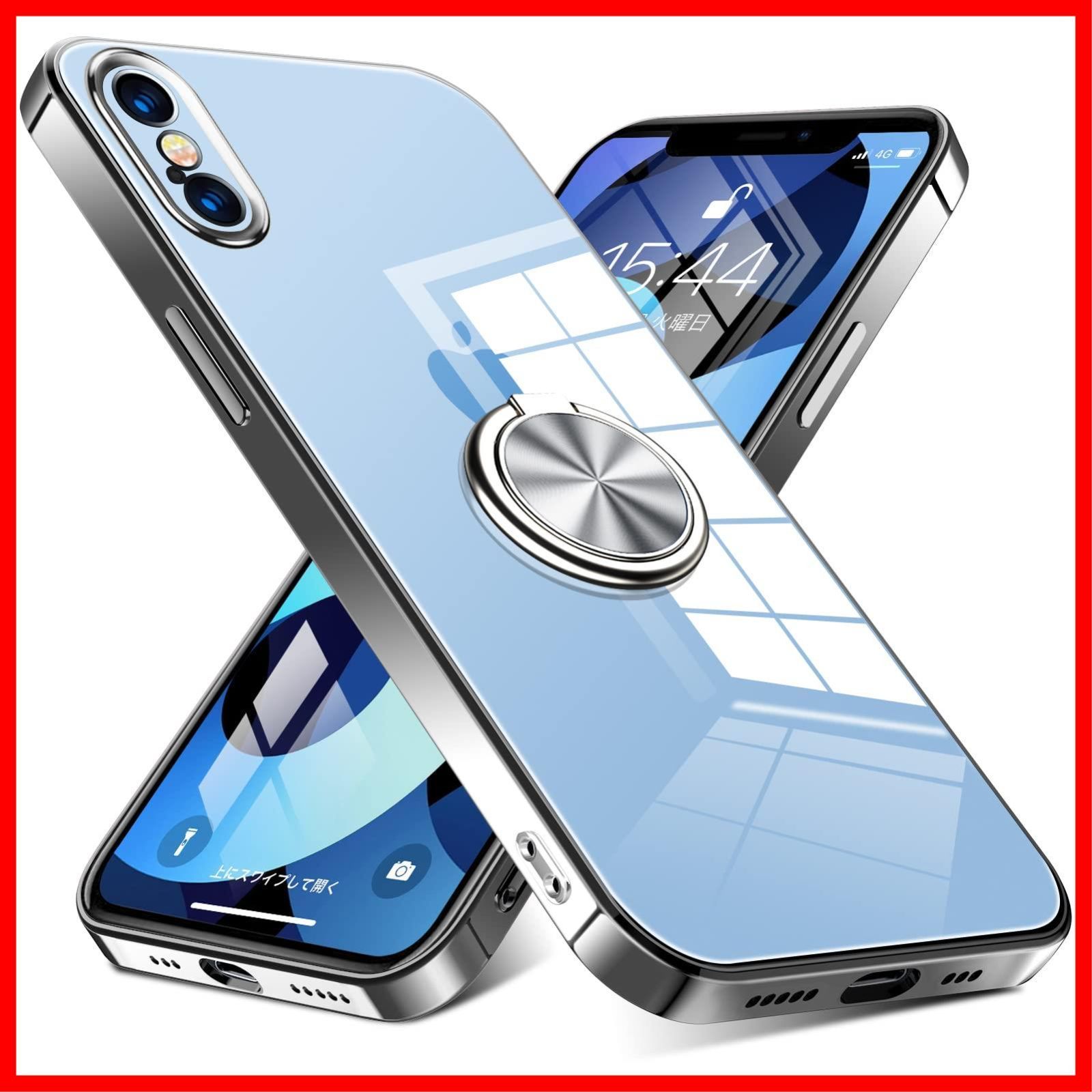 【大特価】iPhone XS ケース/iPhone X ケース リング付き クリア 耐衝撃 スタンド機能 透明 TPU 車載ホルダー対応 落下防止 防塵 薄型 軽量 一体型 変形防止 全面保護カバー アイフォン XS/X ケース 銀 W-YXZH-02-06