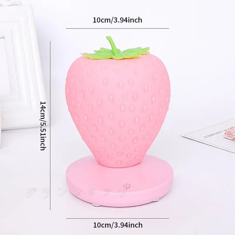 ■サイズ 高さ:14cm 長さ:10cm 10cm ■素材 クリスタル ■種類 ホワイト、レッド、ピンク ■商品説明  この可愛らしいストロベリーランプは、どんな部屋にも温かみと楽しさを加える素敵なナイトライトです。フルーツをモチーフにしたデザインは、子供部屋やリビングルーム、デスク周りなど、さまざまな場所にぴったりで、見るたびに心がほっこりします。3色に変化するLEDライトは、部屋の雰囲気に合わせてお楽しみいただけます。 このナイトライトは、おやすみ前のひとときをよりリラックスさせる演出をしてくれるだけでなく、おしゃれなインテリア照明としても活躍します。USB接続で手軽に使用でき、デスクライトやベッドサイドランプとして大変便利です。可愛いデザインは、お子様へのプレゼントや新生活を始める方への贈り物としても喜ばれること間違いなしです。 優れたデザインと機能性を兼ね備えたこのストロベリーランプは、見る人々を笑顔にしてくれるアイテムです。インテリアのアクセントとして、また癒しの照明として、長く愛用していただけるでしょう。 【アフターサービスポリシーのご案内】 本海外購入商品について、初期不良品が発生した場合、新品の交換または返金の対応をさせていただきます。なお、欠陥品以外の理由(個人的な好みの変更など)による返品・交換はお受けできませんので、ご了承ください。 商品に品質の問題がある場合、商品到着後3日以内に【取引情報】ページからご連絡いただくようお願い申し上げます。状況を確認後、迅速に新品への交換または返金手続きを進めさせていただきます。 注文代金を受け取った後、当社は4~7営業日(土日祝日を除く)以内に発送手続きを行います、発送終わりましたら追跡番号をお知らせいたします。 ◆こちらの対応と商品について何かご不満がありましたら、「悪い評価」を付ける前に一度当方とご連絡ください。出品者の誠意を持って最後まで対応いたします 【購入に関する注意事項】 本商品が海外からの輸入品であることを十分にご理解の上、ご購入いただきますようお願い申し上げます。本商品は基本的にブランド表示がなく、商品画像はモニター環境により実物と色合いが若干異なる場合がございます。画像はあくまでイメージであり、実際の商品と細部が異なる場合があり、また日語の品質表示タグがない場合もございます。細かい点にこだわりのあるお客様は、慎重にご購入をご検討ください。 また、商品サイズは手作業での計測のため、若干の誤差が生じる可能性があります。具体的なサイズは実物をご確認ください。あらかじめご了承ください 【お問い合わせ先】 ご購入過程でご不明な点や商品情報についてのご質問がありましたら、いつでもご相談ください。私たちは、お客様に専門的で質の高いサービスを提供することをお約束いたしますので、安心してお買い物いただけます。 取引完了前にいただいたご支援とご協力に心より感謝申し上げます。今後とも長期的で安定したお取引ができることを楽しみにしております。また、今後も当社の商品とサービスにご注目いただけますようお願い申し上げます。