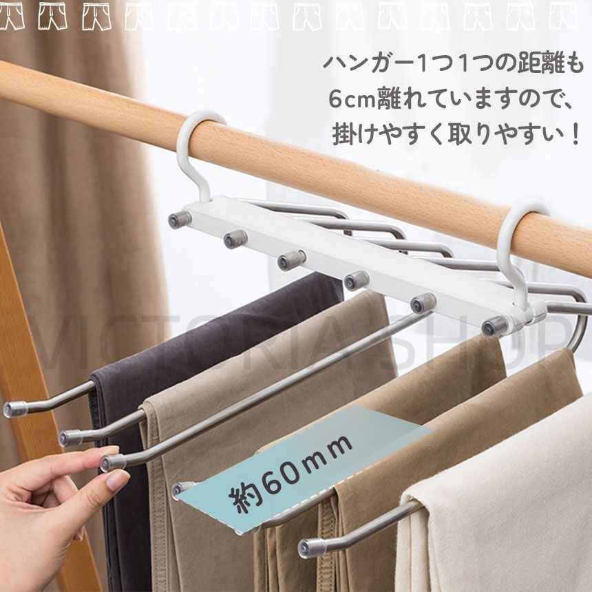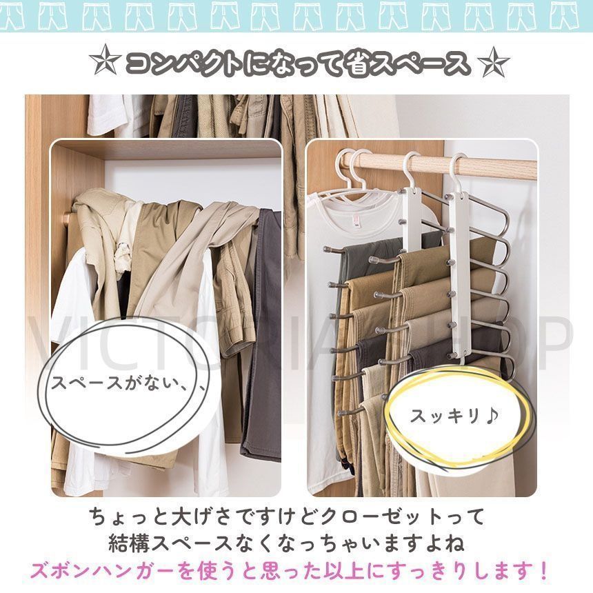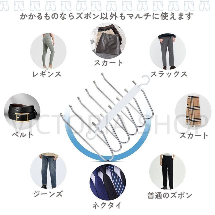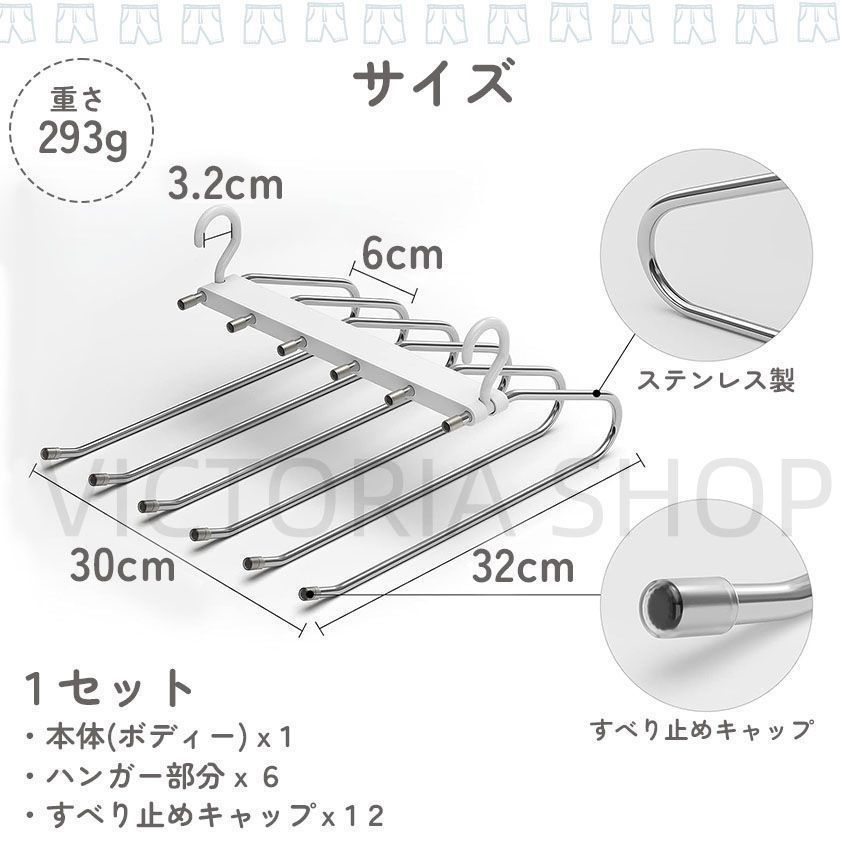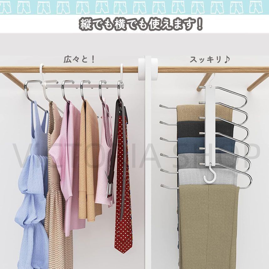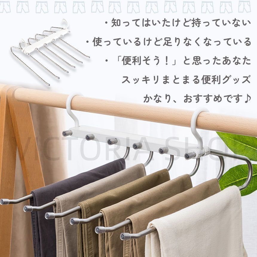 ズボンハンガー 2本セット ハンガー スラックスハンガー 6連 軽量 省スペース 収納 ステンレス スラックス ズボン ベル スカート ネクタイ