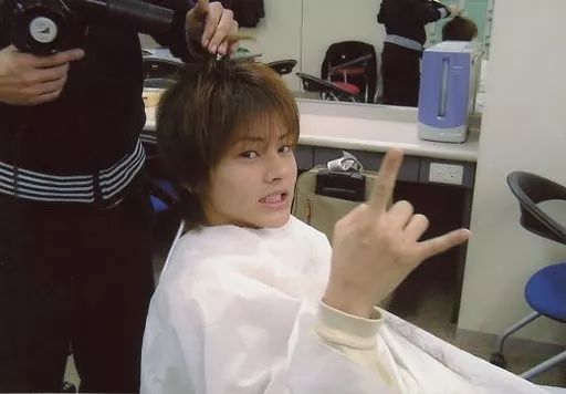 【中古】生写真(男性) Lead/古屋敬多/横型・上半身・衣装白・ケープ・右手指2本立て・右向き・後ろに人・ドライヤー・鏡/生写真