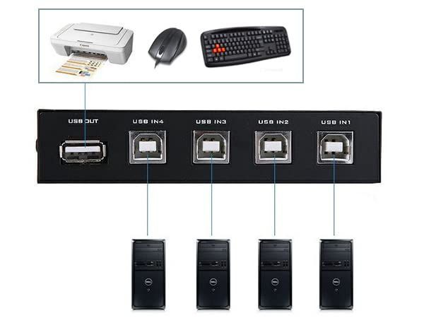 ES-Tune 4 ポート USB 2.0 手動切替器 AVセレクター 4 台 PC 用 4入力1出力 プリンター共有可能 小型で軽量な周辺機器切替装置