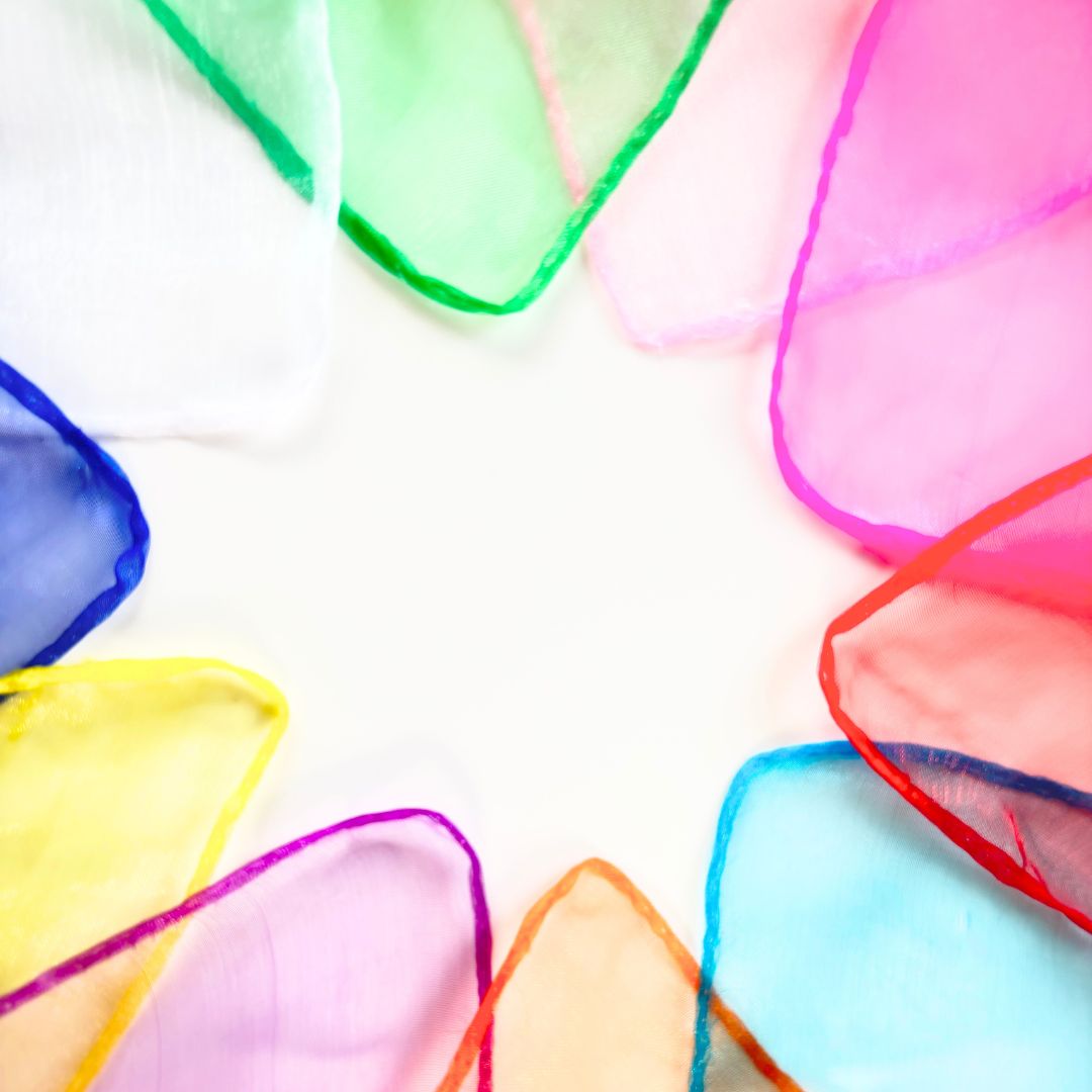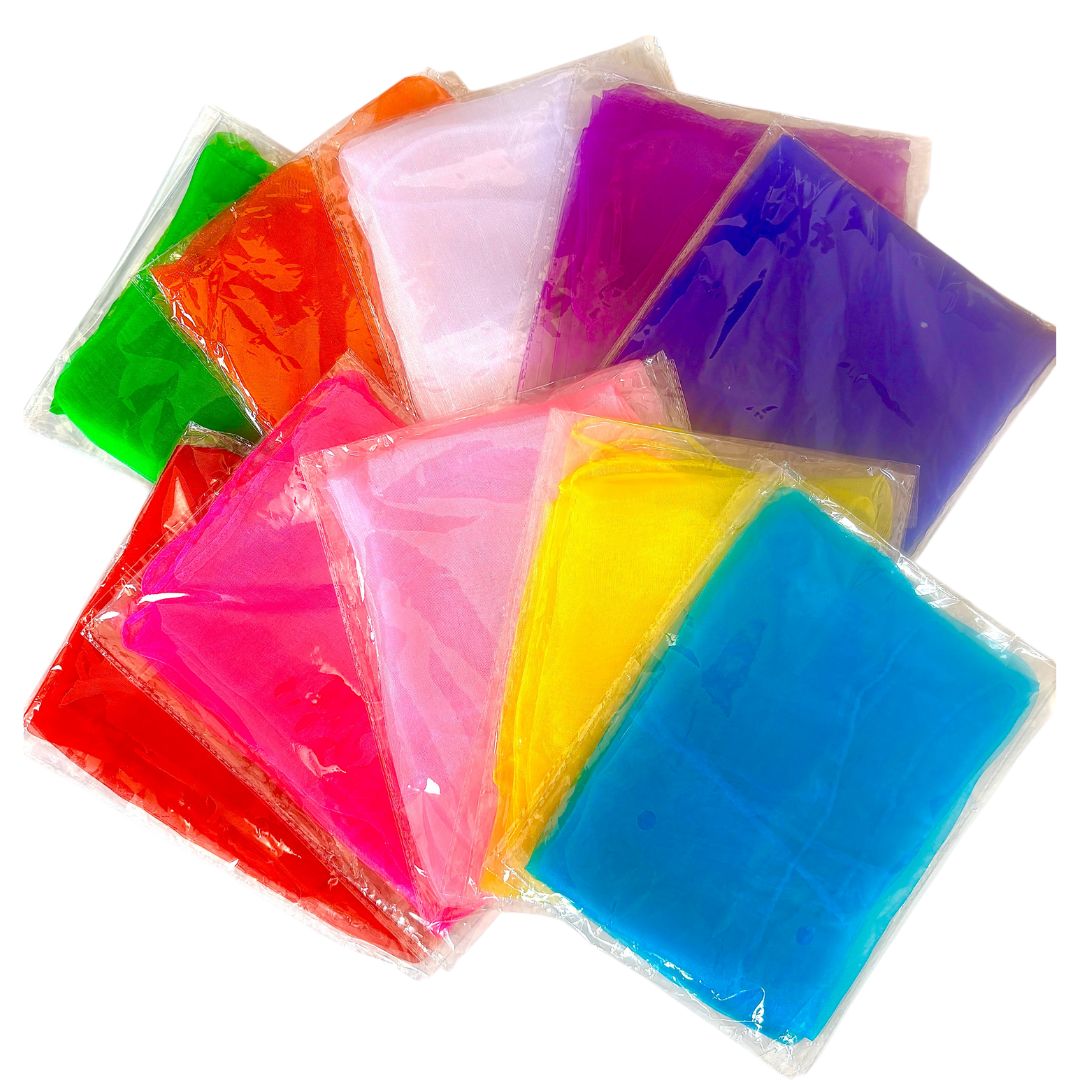 リトミックスカーフ 10色 20枚セット モンテッソーリ 知育玩具 シフォンスカーフ 知育 脳トレ 子ども スカーフ遊び リトミック 生地 知育玩具 リハビリ 高齢者 個包装 NEWリトミックスカーフ
