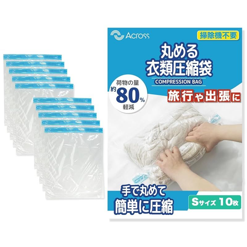 【新品】 Across 手巻き 圧縮袋 衣類 ポンプ不要 収納袋 旅行 防カビ ダニ対策 再利用可能 (Dタイプ/S-10枚) 0