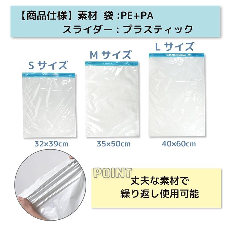 ご覧いただきありがとうございます。 は全国一律無料となっております。 以下商品説明となります。 【商品概要】 【掃除機いらずで巻くだけ簡単】衣類、タオル、シーツ、枕カバー、布団などを圧縮し、最大80%のスペースを省くことができます。 掃除機いらずなので、旅行や衣替えにも使えます。荷造りが簡単にできます! 【十分な強度と使いやすさ】PE+PA素材は厚みがあり、優れた靭性と耐パンク性があります。また圧縮袋は防水性と密封性に優れていますので、衣類を湿気やほこりから守って、長時間収納しても無臭です。真空状態でカビとダニの侵入も防ぐので、季節変わり目のふとんの整理には大活躍しています。 【衣類保護機能】高い気密性と長時間の真空状態により、衣類を湿気、ほこり、カビ、虫、さらには不快な臭いから徹底的に守ります。これにより、衣類の変形やしわを効果的に防ぎ、季節に応じて使用しない物を収納することで、整理整頓された生活スペースを手に入れることができます。 【再利用可能でエコ】圧縮袋に使用されている材質PE+PA素材は、厚みと強度があるので再利用が可能になっています。衣替えや引っ越しなど様々なシーンで活躍します。 【商品仕様】素材:PE+PA素材 サイズ:Sサイズ 32×39cm、Mサイズ 35×50cm、Lサイズ 40×60cm セット内容:AタイプS5枚M5枚,BタイプM4枚L4枚,CタイプS3枚M3枚L2枚 【商品説明】 【掃除機いらずで巻くだけ簡単】衣類、タオル、シーツ、枕カバー、布団などを圧縮し、最大80%のスペースを省くことができます。 掃除機いらずなので、旅行や衣替えにも使えます。荷造りが簡単にできます! 【十分な強度と使いやすさ】PE+PA素材は厚みがあり、優れた靭性と耐パンク性があります。また圧縮袋は防水性と密封性に優れていますので、衣類を湿気やほこりから守って、長時間収納しても無臭です。真空状態でカビとダニの侵入も防ぐので、季節変わり目のふとんの整理には大活躍しています。 【衣類保護機能】高い気密性と長時間の真空状態により、衣類を湿気、ほこり、カビ、虫、さらには不快な臭いから徹底的に守ります。これにより、衣類の変形やしわを効果的に防ぎ、季節に応じて使用しない物を収納することで、整理整頓された生活スペースを手に入れることができます。 【再利用可能でエコ】圧縮袋に使用されている材質PE+PA素材は、厚みと強度があるので再利用が可能になっています。衣替えや引っ越しなど様々なシーンで活躍します。 【商品仕様】素材:PE+PA素材 サイズ:Sサイズ 32×39cm、Mサイズ 35×50cm、Lサイズ 40×60cm セット内容:AタイプS5枚M5枚,BタイプM4枚L4枚,CタイプS3枚M3枚L2枚 【商品詳細】 ブランド:Across 商品種別:圧縮袋 商品名:【新品】 Across 手巻き 圧縮袋 衣類 ポンプ不要 収納袋 旅行 防カビ ダニ対策 再利用可能 (Dタイプ/S-10枚) 製造元:オルトラボ株式会社 商品内容:60 cm 直径 x 40 cm 高さ 商品タイプ:Dタイプ/S-10枚
