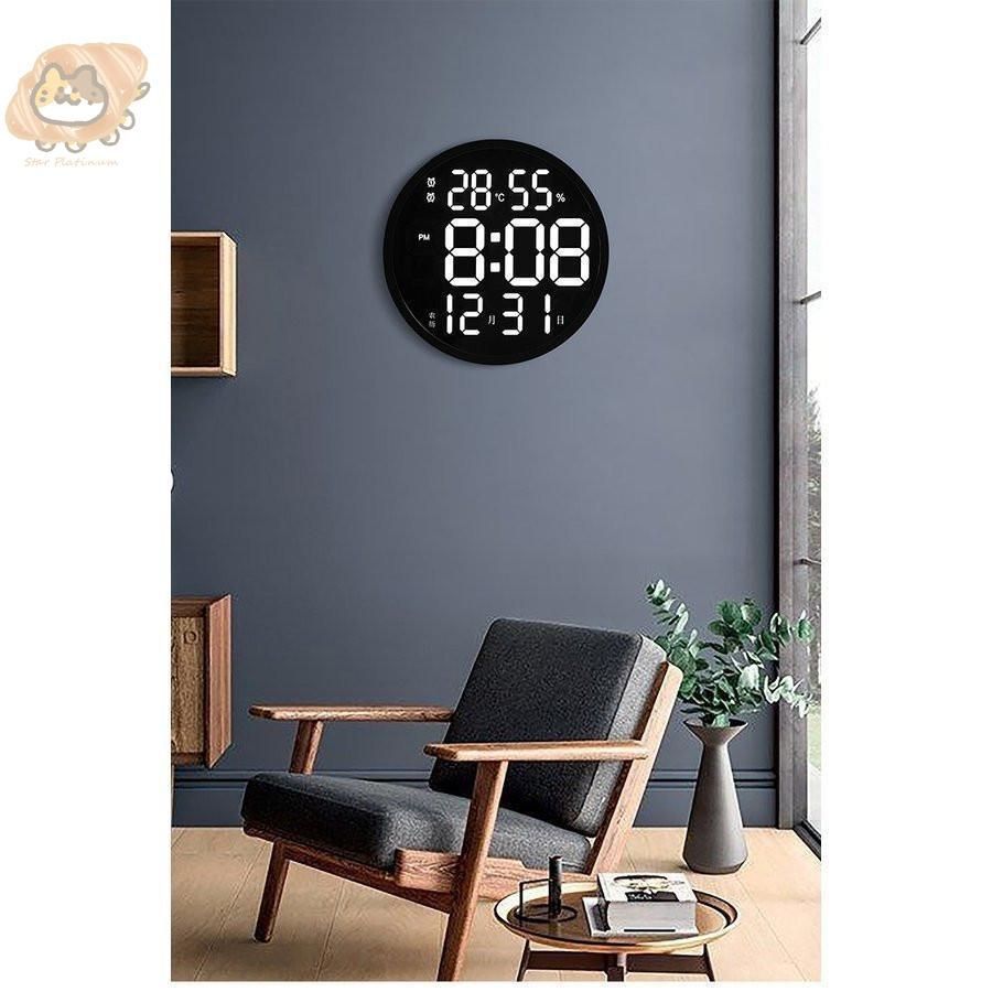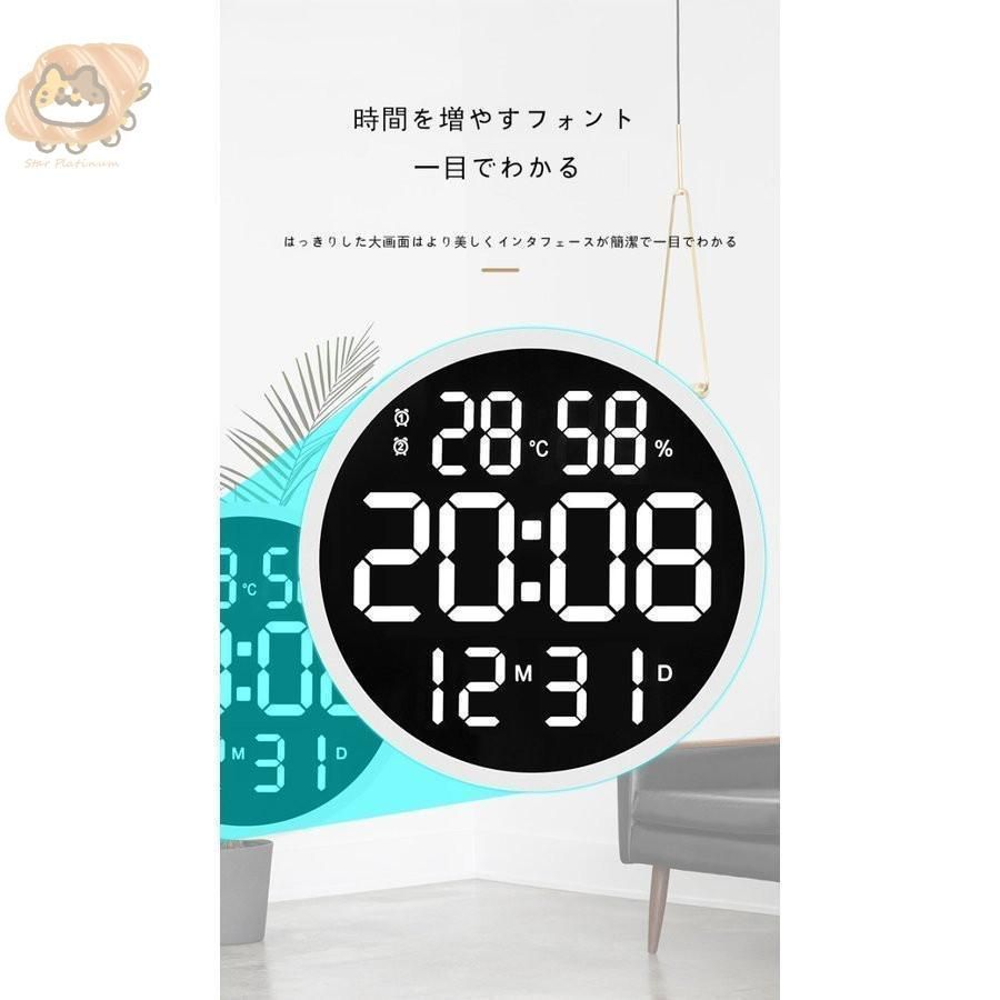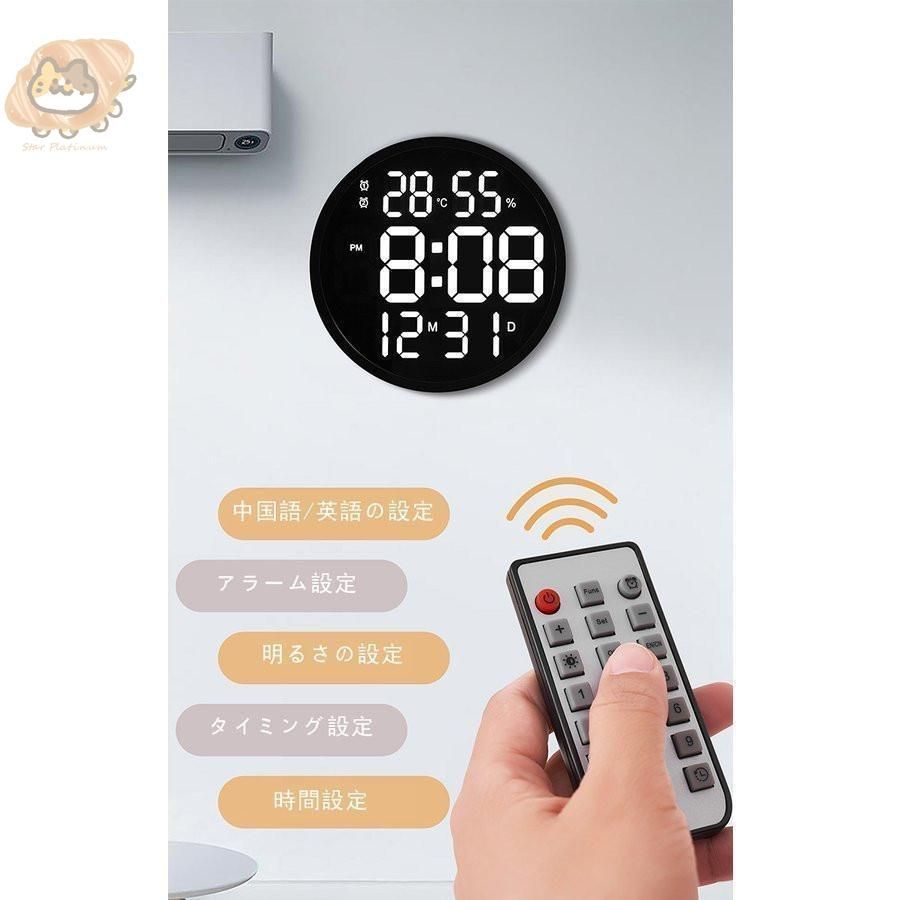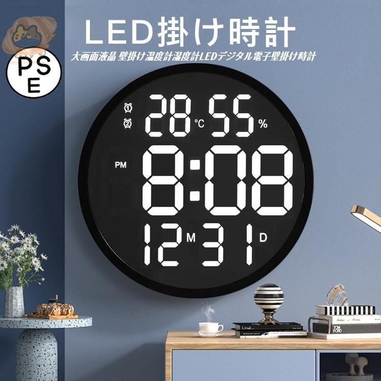 掛け時計 リモコン付き 大画面液晶 壁掛け温度計湿度計LEDデジタル電子壁掛け時計 照明 自動感応夜光 壁掛け時計 3D LEDデジタル時計 ウォ