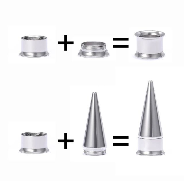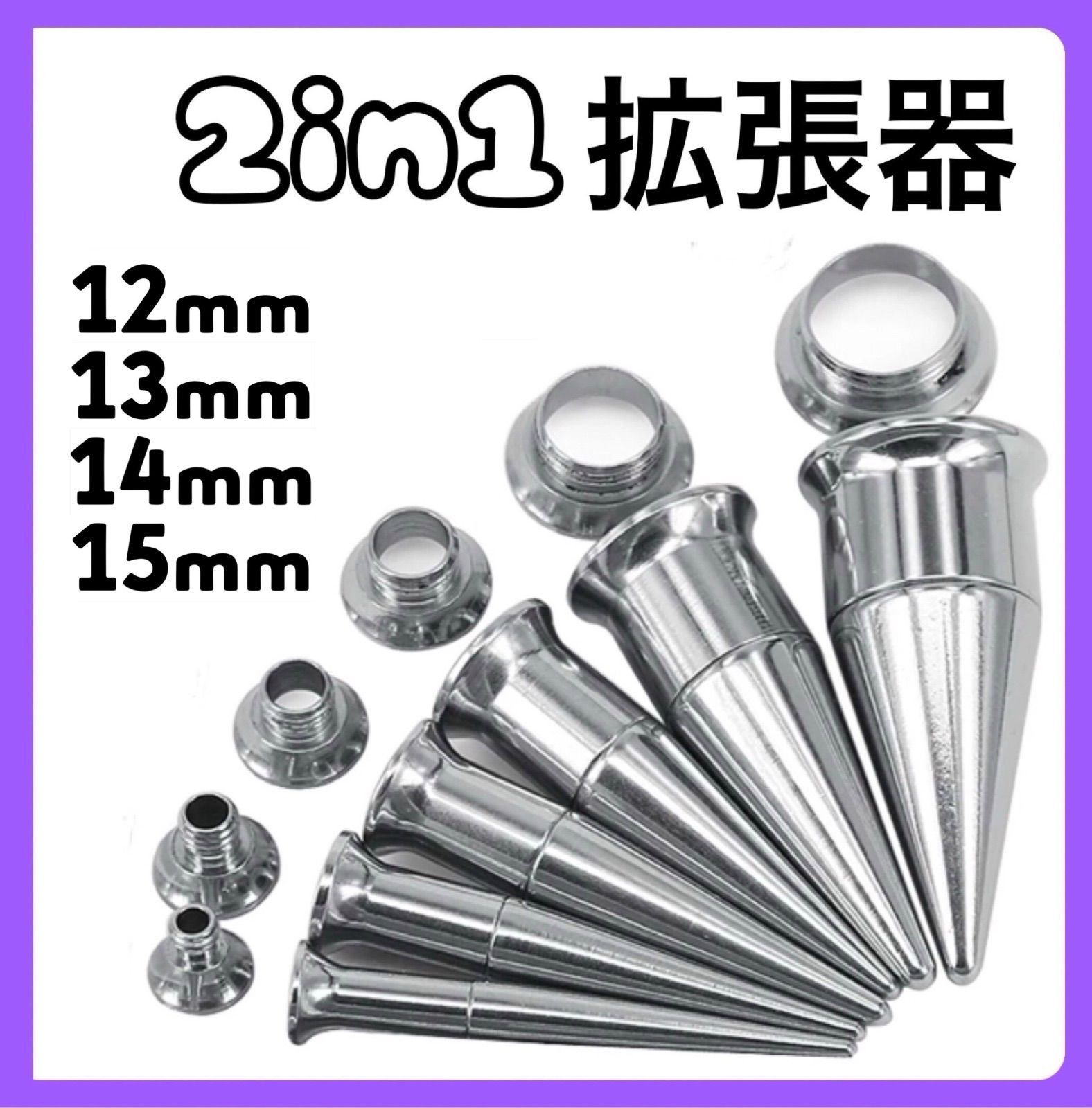 2in1 ボディピアス 拡張器 ダブルフレア シルバー 12mm 13mm 14mm 15mm