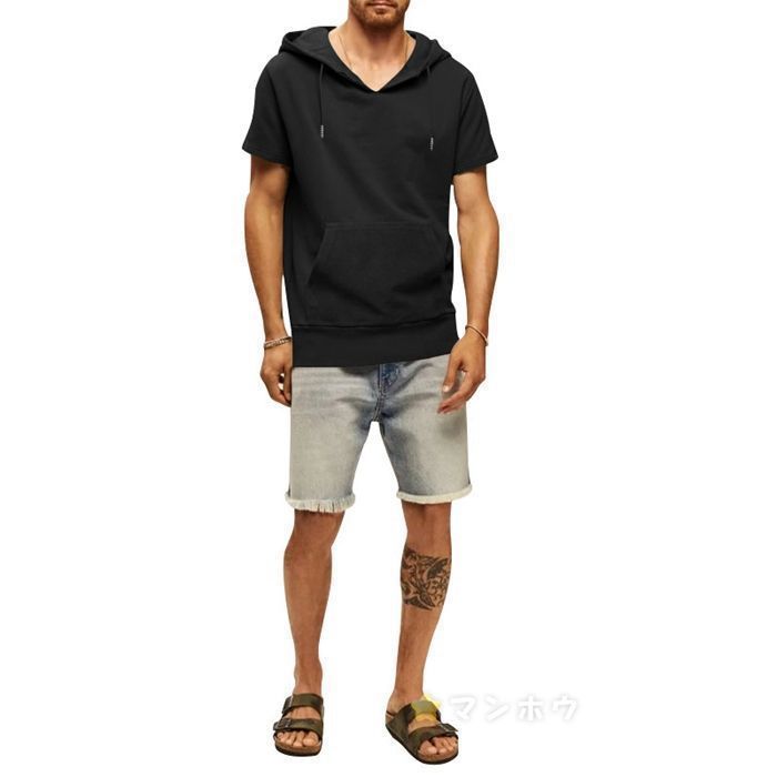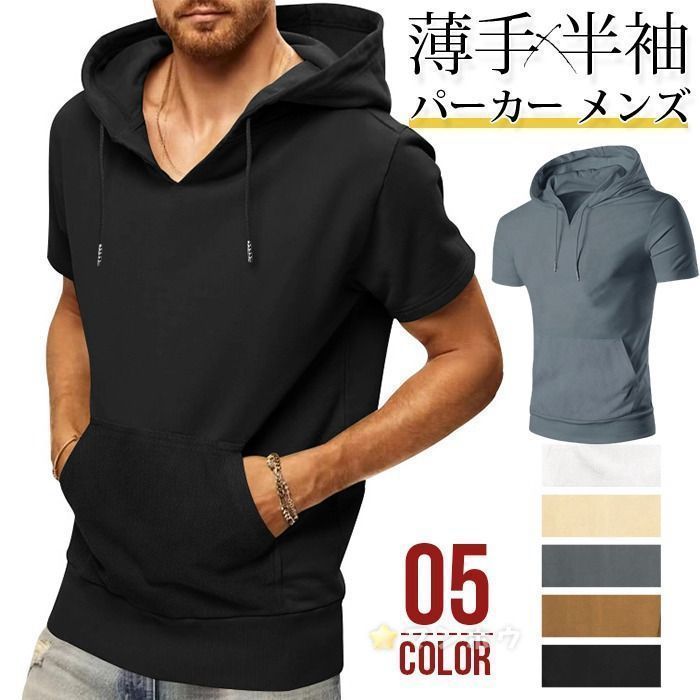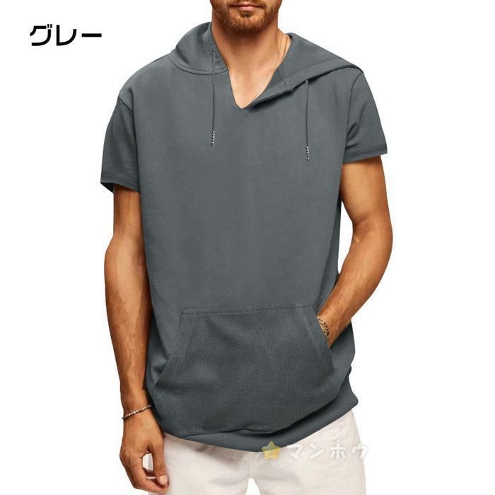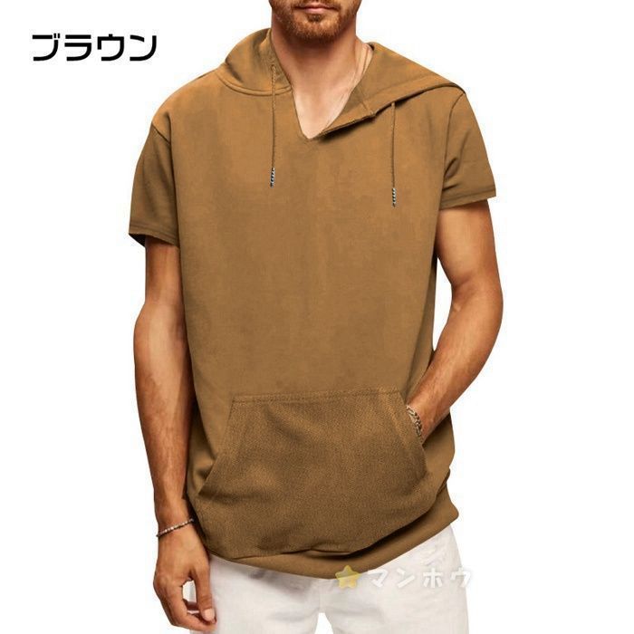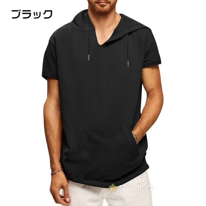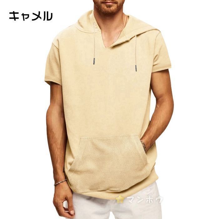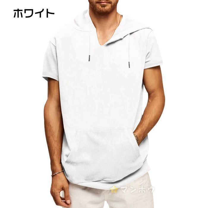 メンズ 半袖 夏 トップス プルオーバー 薄手 フード付きtシャツ カジュアル 夏服 ゆったり 無地 大きいサイズ ルームウ シンプル