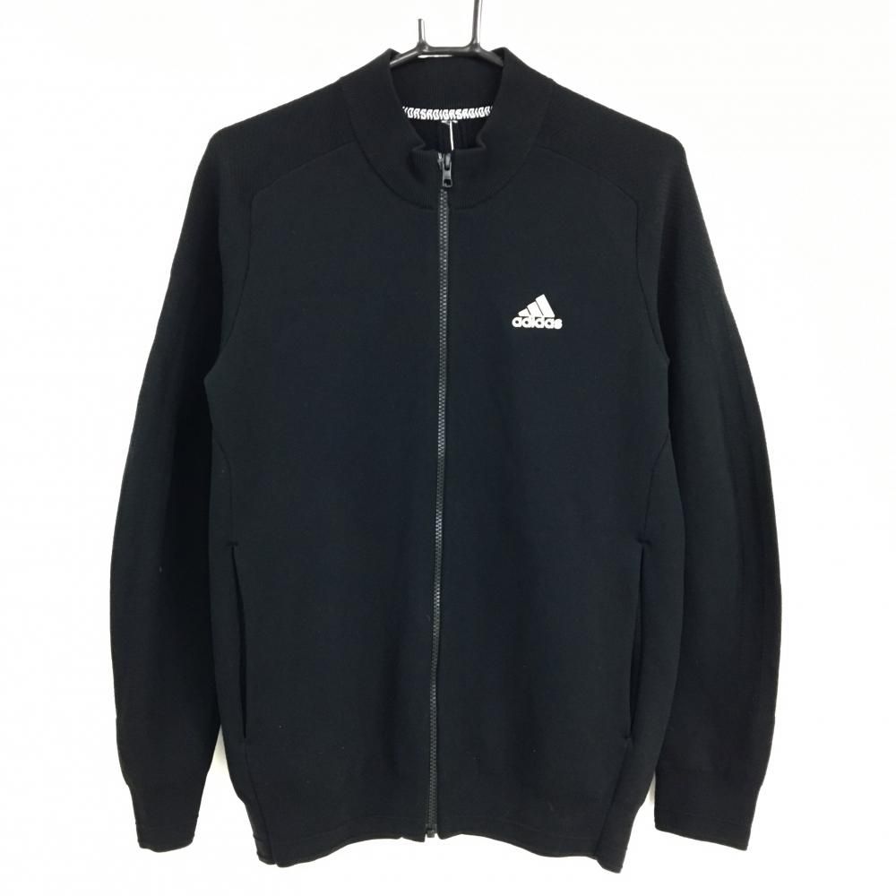 【美品】アディダス ニットジャケット 黒 ロゴシルバー メンズ ゴルフウェア adidas