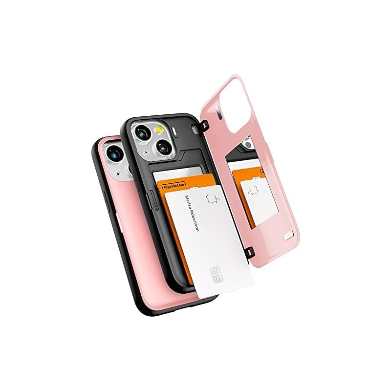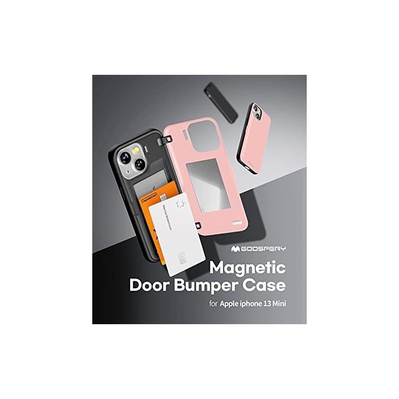 【新品】 Goospery iPhone 13 Mini 用 ケース 背面 カード 収納 マグネット式 バンパー バンパー カバー 5.4 インチ、アイフォン13 Mini ケース カード収納 背面 ケース 2枚 カード入れ カバ— (ピンク/ピンクサンド 1