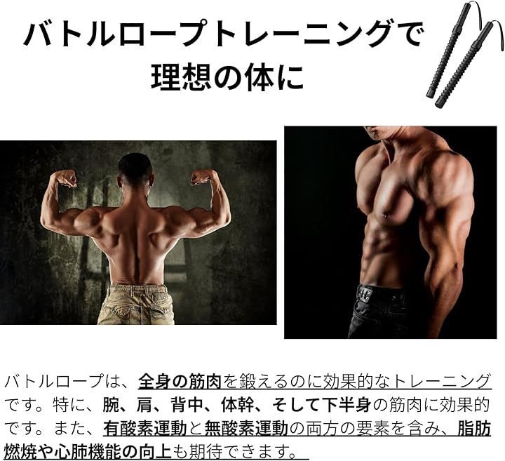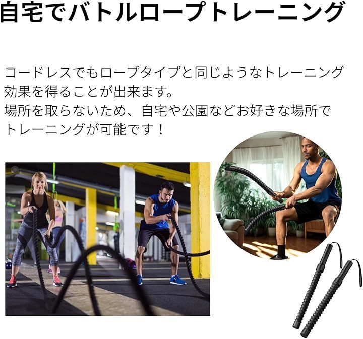 POPULAR MARKET バトルロープ 運動 コードレス マッスル トレーニング ジム ポータブル ホーム 筋トレ ロープレスバトルロープ 自宅 筋トレグッズ フィットネス器具 ソフトラバーコーティング(ブラック)