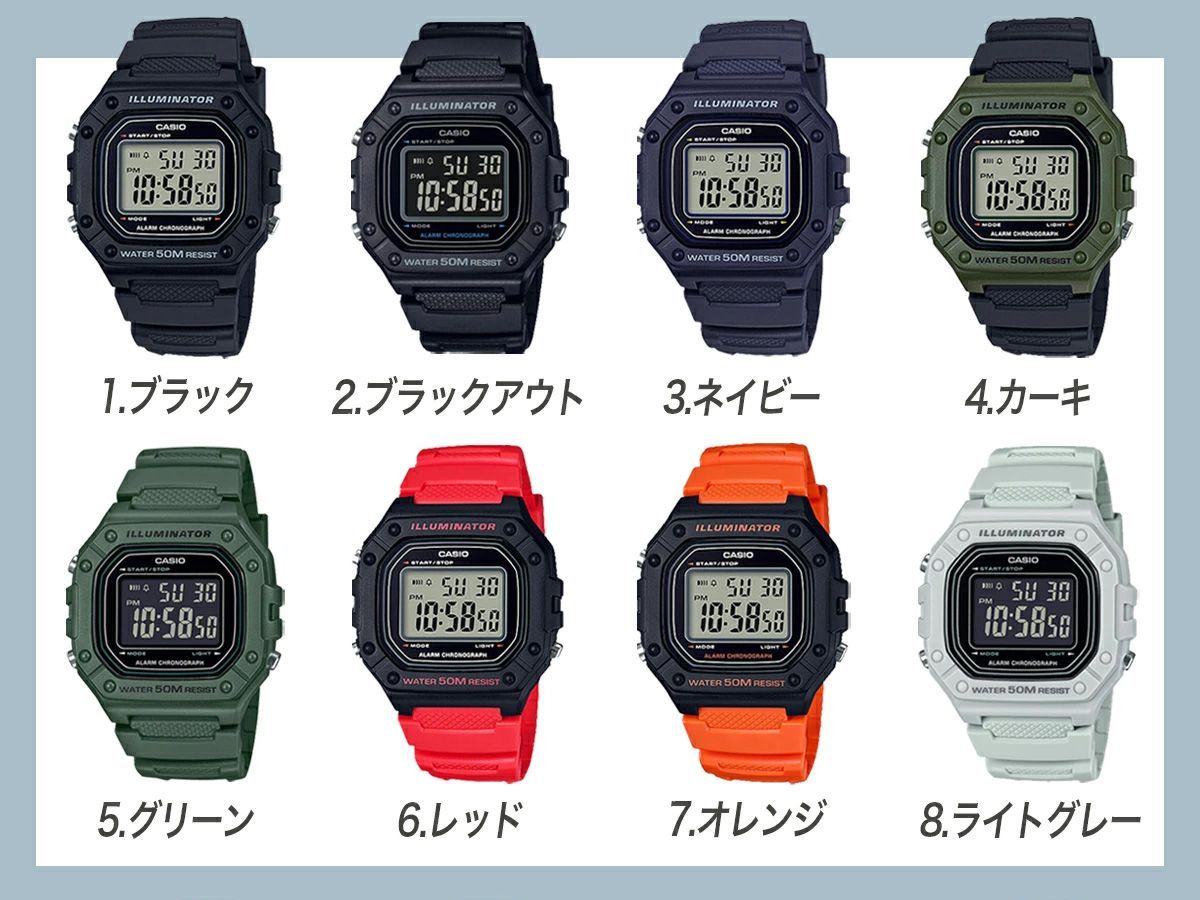 CASIO カシオ 薄型 軽量 防水 ユニセックス スクエア デジタル W218 シンプルでオシャレ 操作が簡単な腕時計 メンズ レディース キッズ チープカシオ チプカシ プチプラ ギフト プレゼント