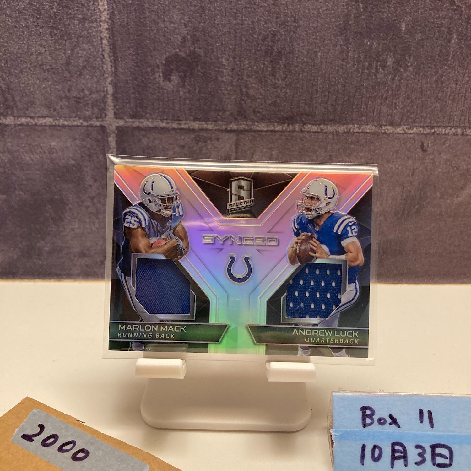 2017 Panini Spectra Marlon Mack Andrew Luck 016/199 INDIANAPOLIS COLTS; INDIANAPOLIS COLTS Dual ジャージ Synced カード