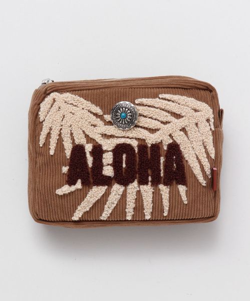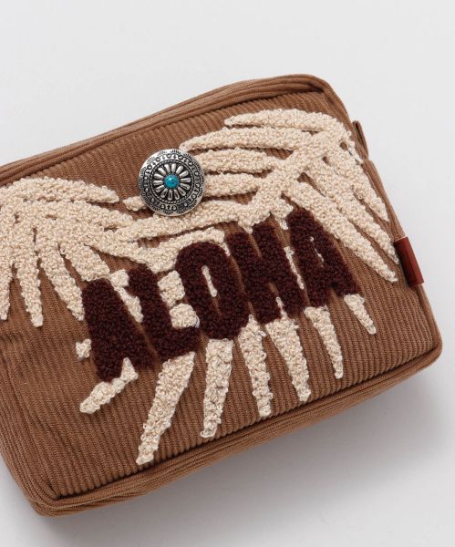 アケウパーマポーチ ポーチ コーデュロイ コンチョボタン サーフィン アロハ ハワイ ハワイアン ハワイアン雑貨 アメリカン雑貨 雑貨 生活 ウッド オシャレ おしゃれ シンプル 日用品 日用雑貨