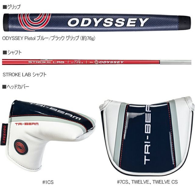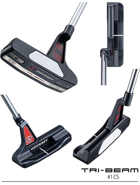 オデッセイのニューモデル、「TRI-BEAMパター」は、ひと目で斬新さに気づくことができます。シャフトの先に繋がっているのは、ラケットホーゼルと名づけられた直角三角形。従来のものよりも強力にヘッドを支えており、オフセンターヒットでも安定したボールの打ち出しを可能にしています。またソールにおいても、芯を外したインパクトに対する強さを発揮すべく、フェース寄りのトウ・ヒールに約15g(6M,DOUBLEWIDE,DOUBLEWIDECSは約10g)のウェイトを搭載。低・浅重心により、高い操作性、距離感の合わせやすさも同時に実現しています。ラインアップは、ブレードからマレットまで6種類を用意。もちろん、すべてにホワイト・ホットインサート、STROKELABシャフトを採用しており、あらゆる面で高いパフォーマンスをもたらします。