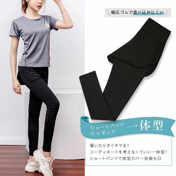 ショートパンツ 一体型 レギンス レディース 単品 スポーツウェア ヨガウェア ランニング ウェア ウォーキング トレーニングウェア フィットネスウェア スパッツ ハイウエスト フレア ヨガ ピラティス ヨガパンツ ヨガウェア