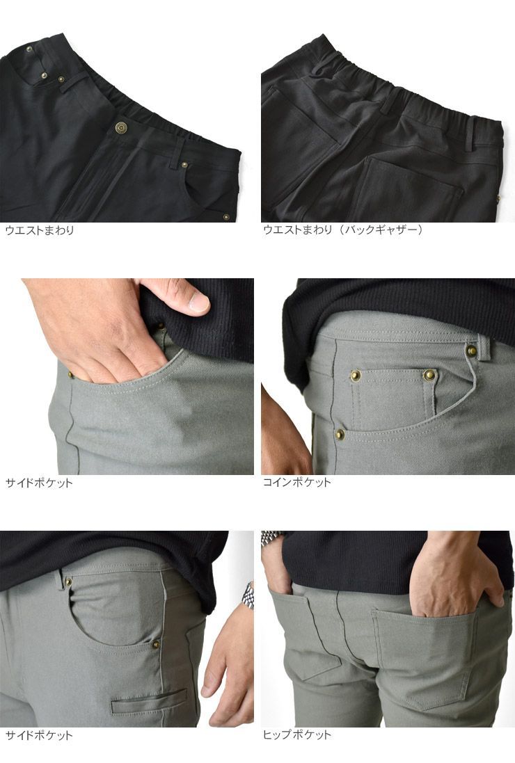 ③スマホポケット・・・・・・・左太ももサイドに施したミニポケットがスマホを収納するのに丁度イイ。フロントやヒップポケットにスマホを入れていて落としたりお尻で踏んずけた事って誰もが経験したハズ。本商品のスマホポケットはそれらの危険を軽減させてくれる絶妙な取りけ位置とポケットサイズです。一度慣れると手放せません。