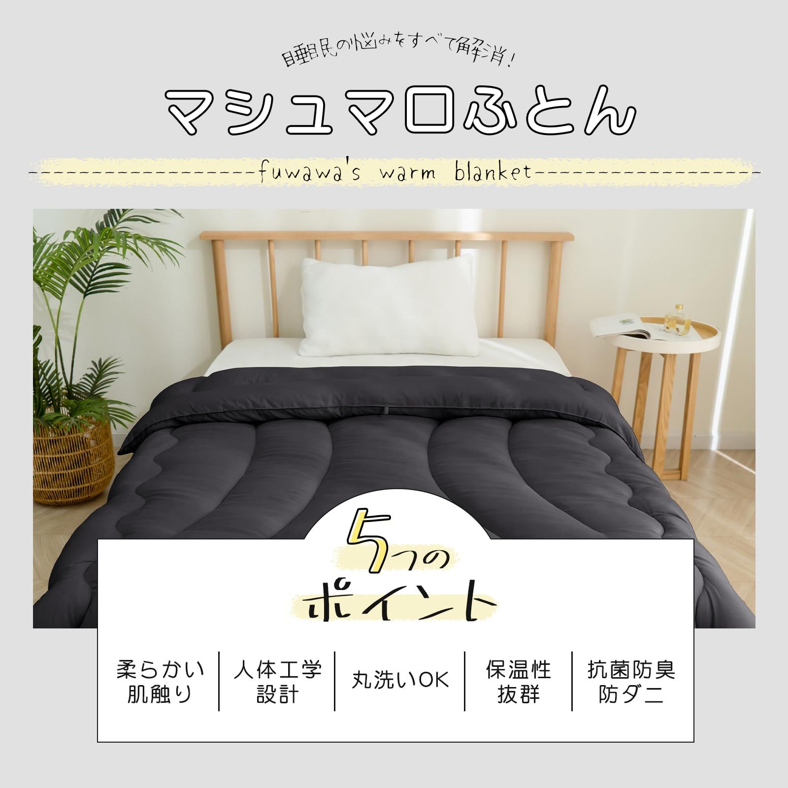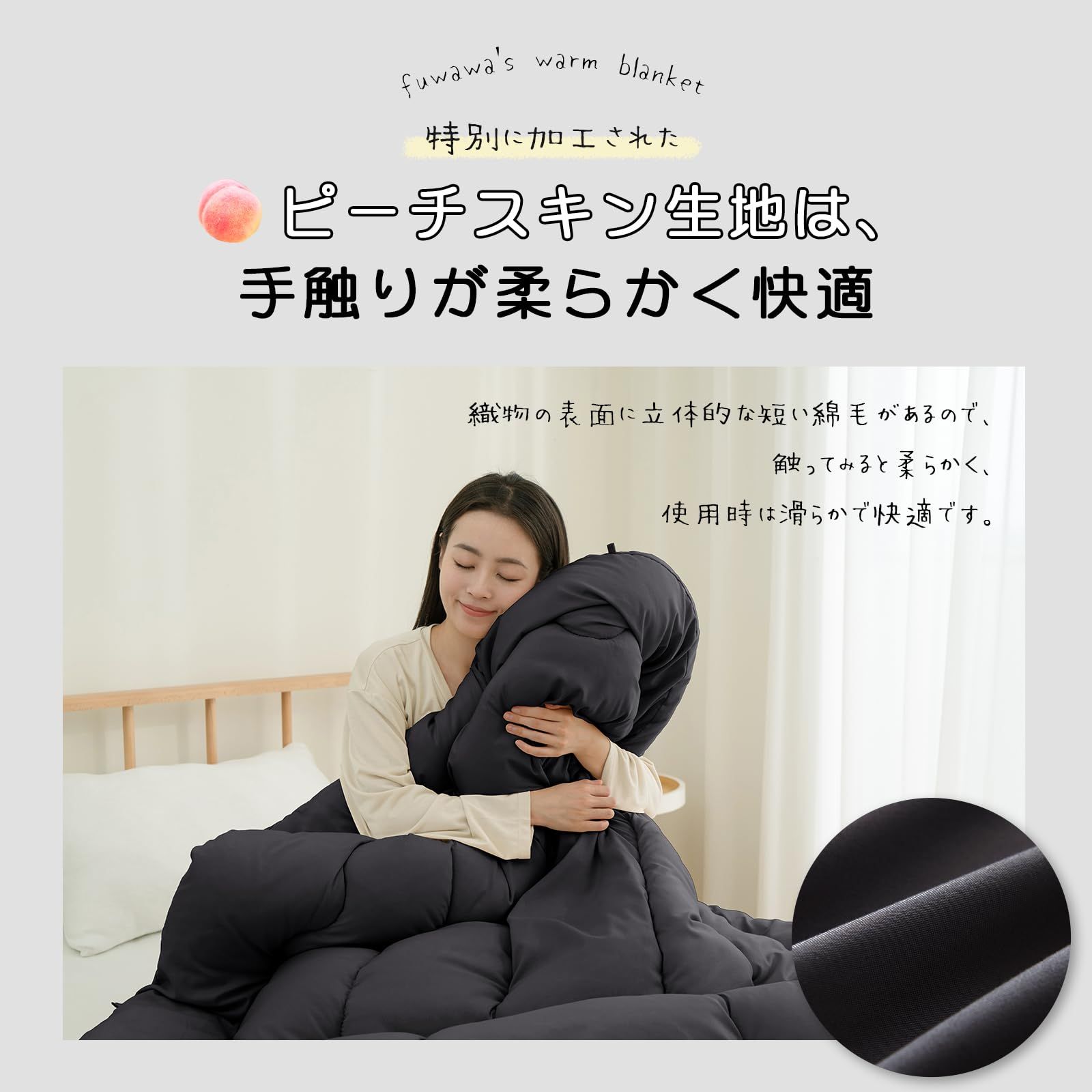 fuwawa 掛け布団 セミダブル 冬用 暖かい かけ布団 冬 抗菌防臭・防カビ・防ダニ 掛けふとん ふとん 帝人マイティトップⅡECO使用 SEK認証 軽量 柔らかな肌触り 洗える 布団 ピーチスキン加工 充填量1.7kg (170x210 ブラック)
