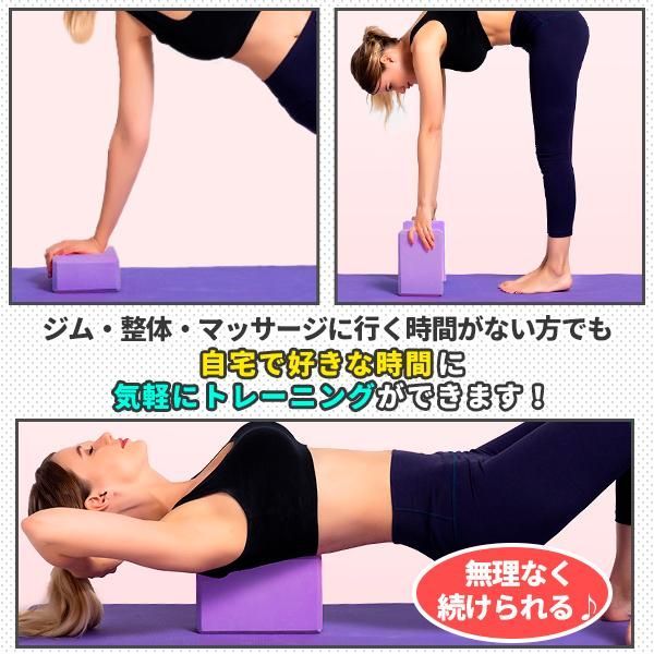 ヨガブロック 2個セット 軽量 軽い 丈夫 柔らかい ストレッチ 用品 用具 フィットネス ヨガ ピラティス ダイエット ジム エクササイズ 体幹 トレーニング 紫