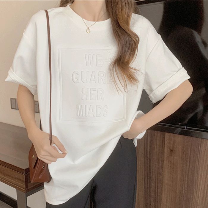 エンボス 立体ロゴ ロゴT Tシャツ カットソー レディース エンボス加工 ロゴTシャツ トップス 半袖 五分袖 ゆったり カジュアル 大きいサイズ 英字 3D 春 夏 秋 /全国送料無料/ /限定販売/ /追跡番号付きで安心/ ♢