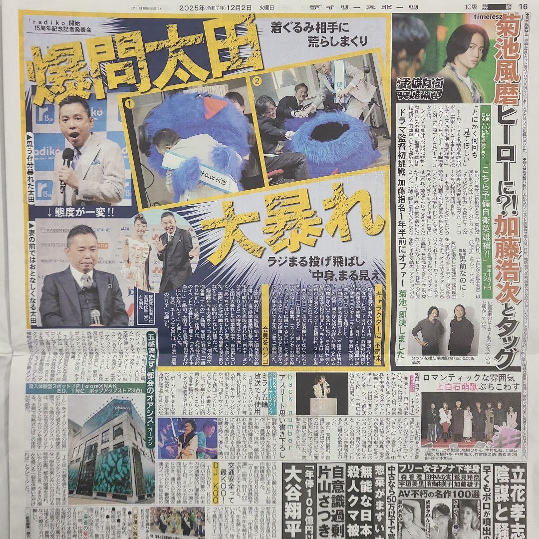匿名配送!送料込み! 12月2日 朝刊 スポーツ紙全5社