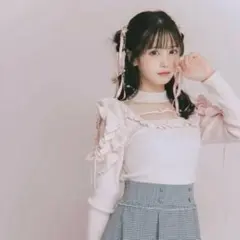 meltie きらきらショルダーフリルニット ピンク