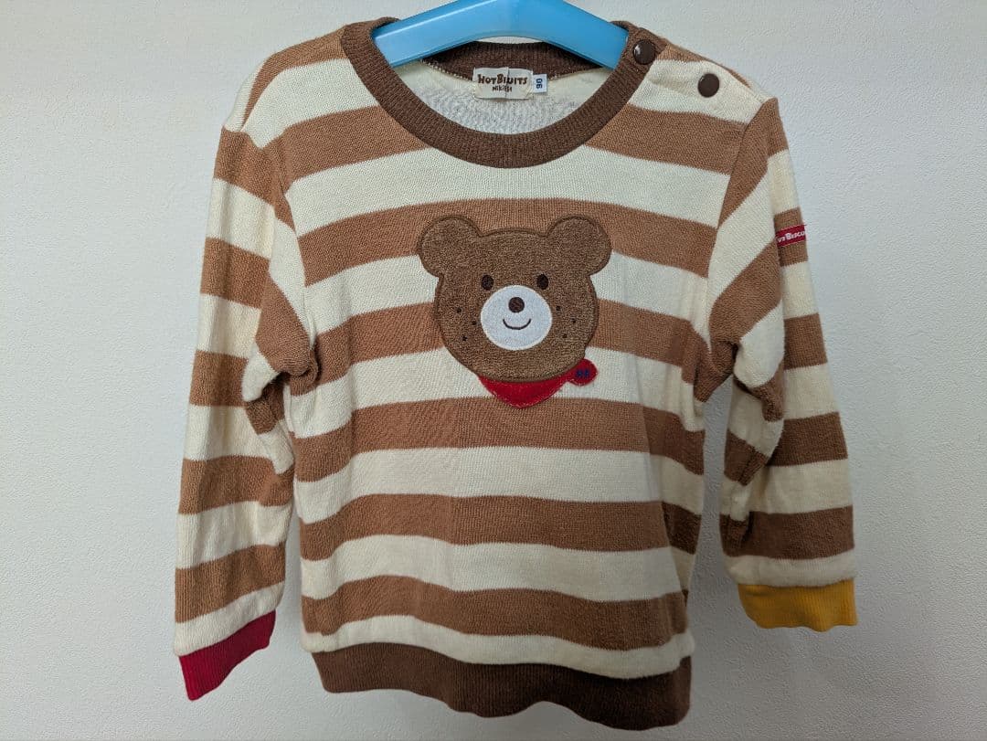 HOT BISCUITS クマ刺繍 長袖トレーナー 茶色と白のストライプ