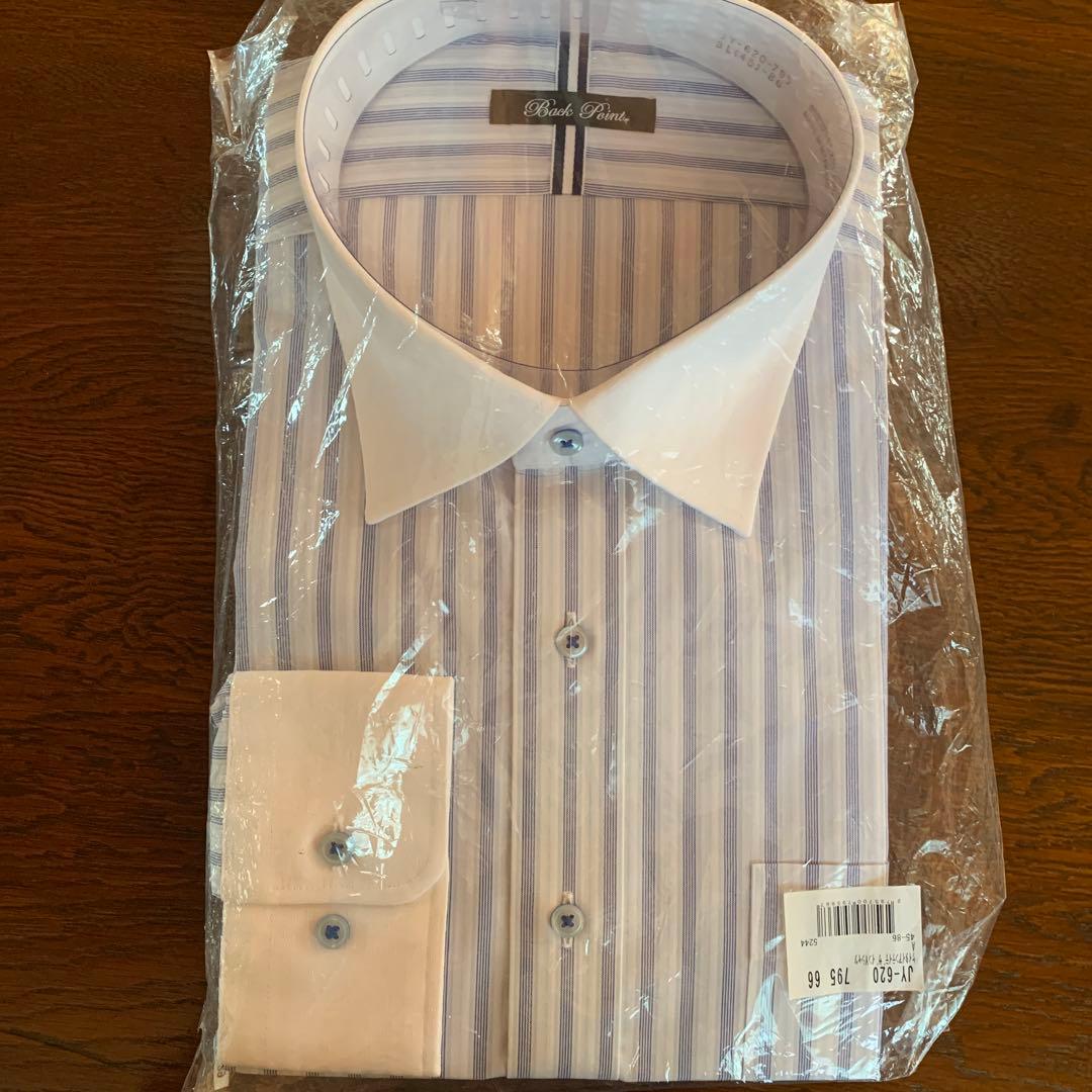未使用 Back Pointブルー系ストライプ長袖シャツ 3L