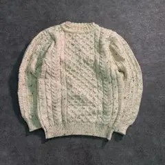 6AS1ケーブル編み ニット 丸襟 プルオーバー バルキー 白 古着