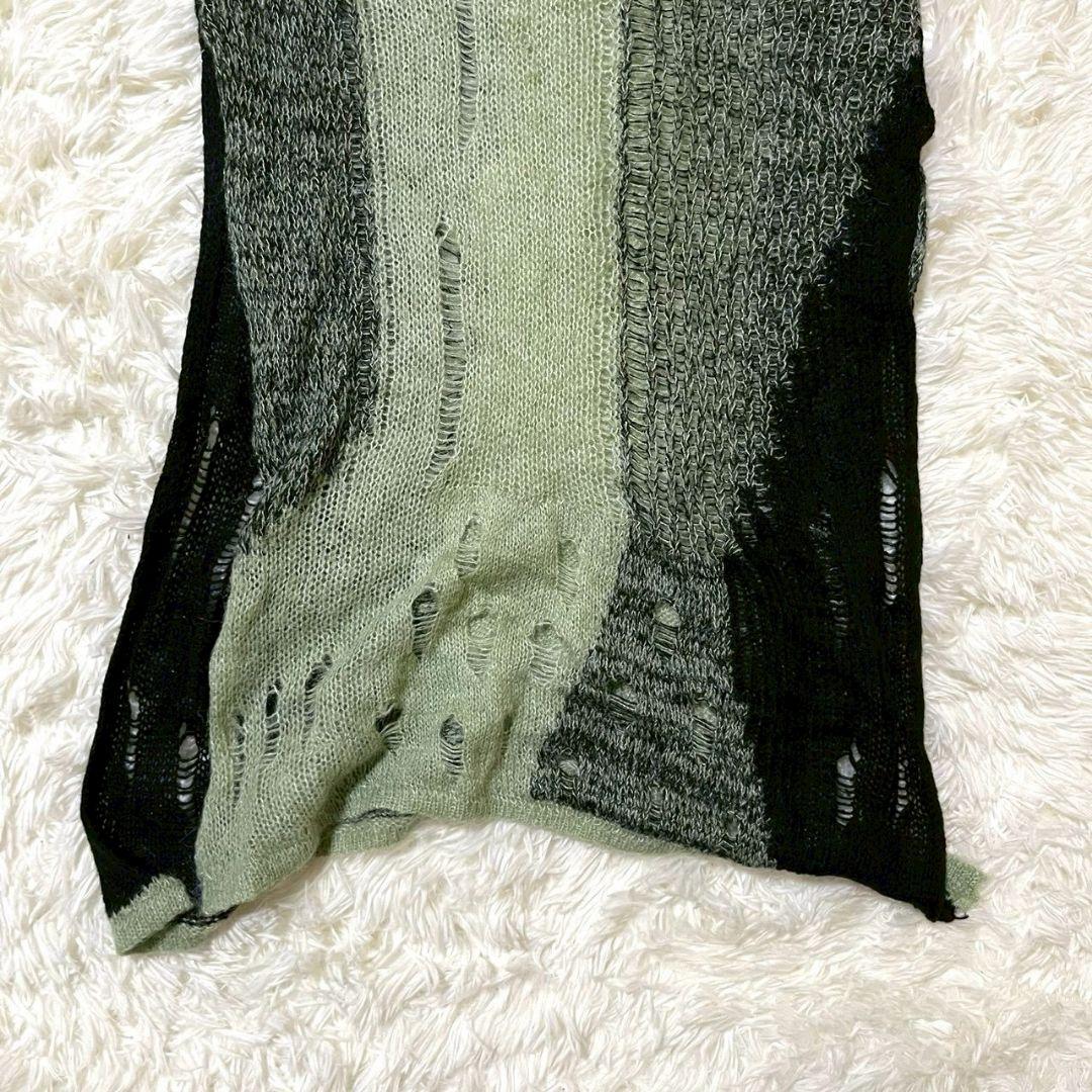 サイダー CIDER ダメージ加工 ニットワンピース ロング グリーン S