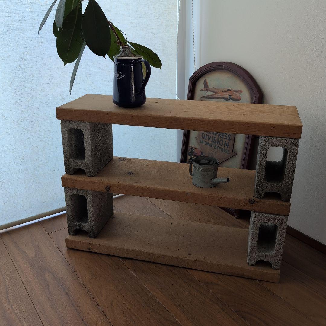 木製ラック 2段式 コンクリートブロック使用☆引き取り限定☆
