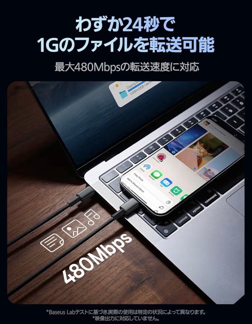【新品】Baseus USB-C ケーブル 100W急速充電 タイプC 1m