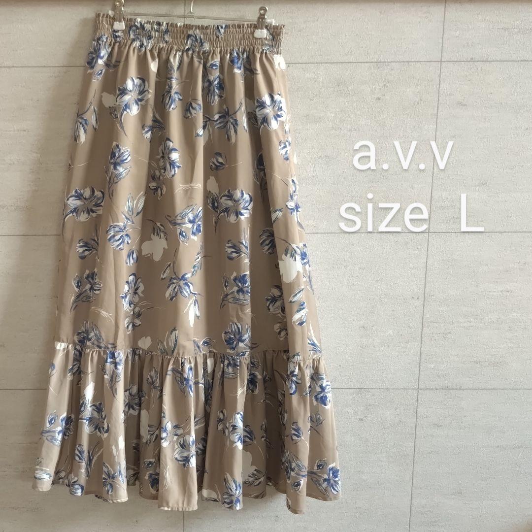 a.v.v フレアスカート Lサイズ ベージュ花柄