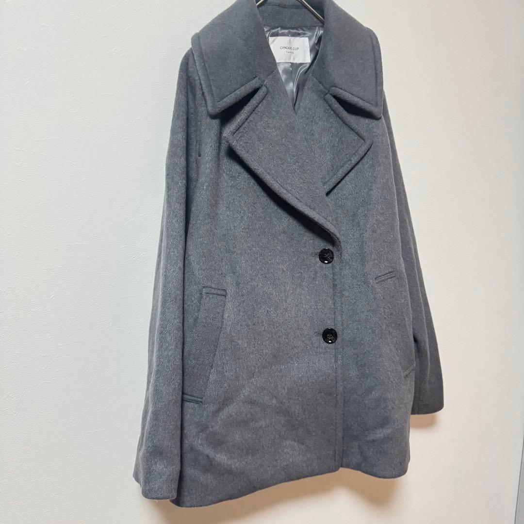 オペークドットクリップ カシミヤブレンド ピーコート 38 グレー