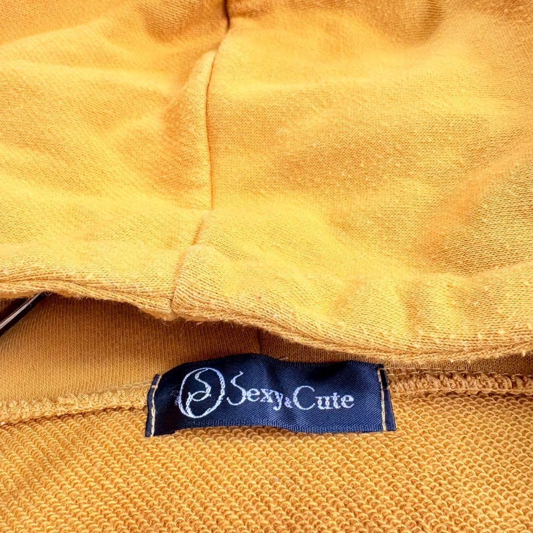 ロング丈長袖パーカー パーカーワンピ ビッグプリント プルオーバー マスタード