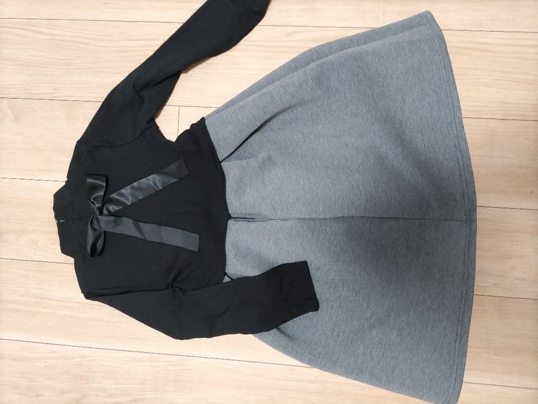 黒とグレーの長袖ワンピース
