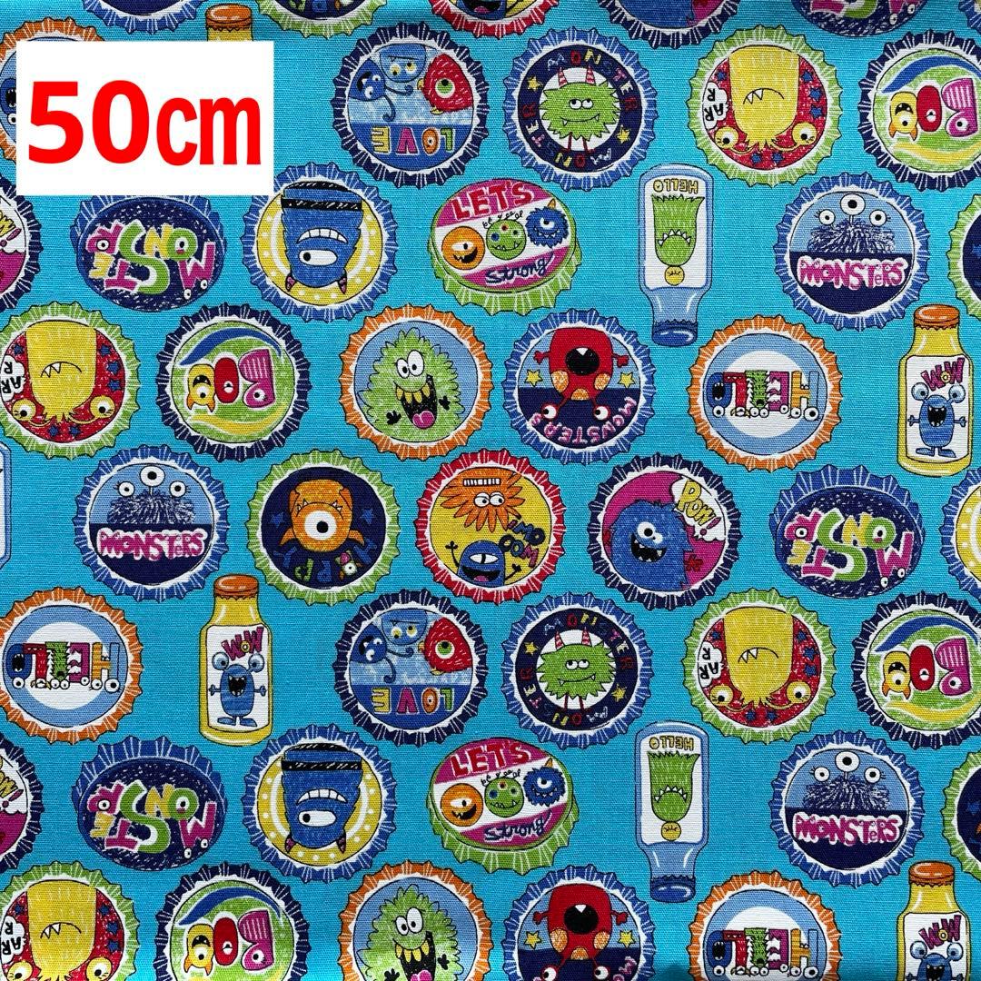 綿プリント生地 モンスター 水色 110㎝×50㎝