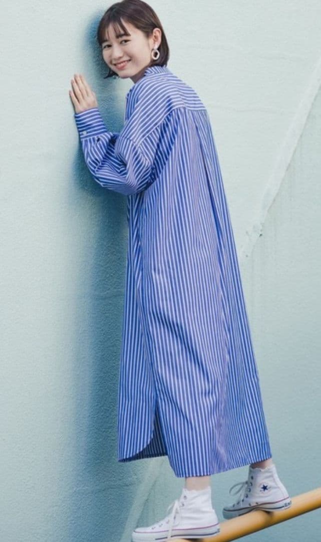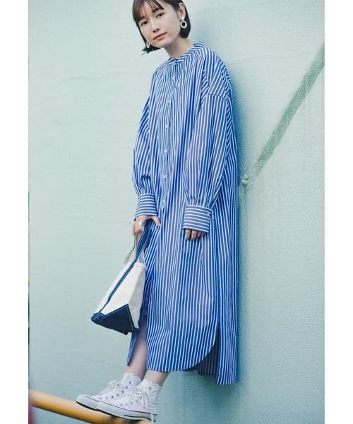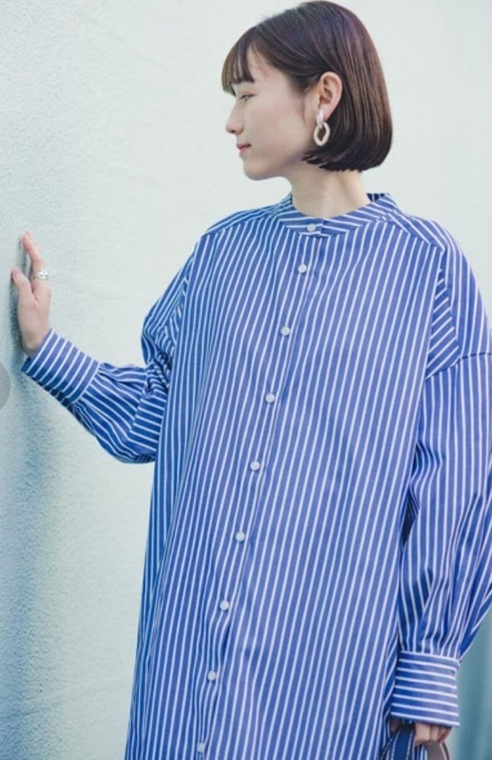 haco!▶︎オーバーサイズバンドカラーゆったりシルエットシャツワンピ /ブルー