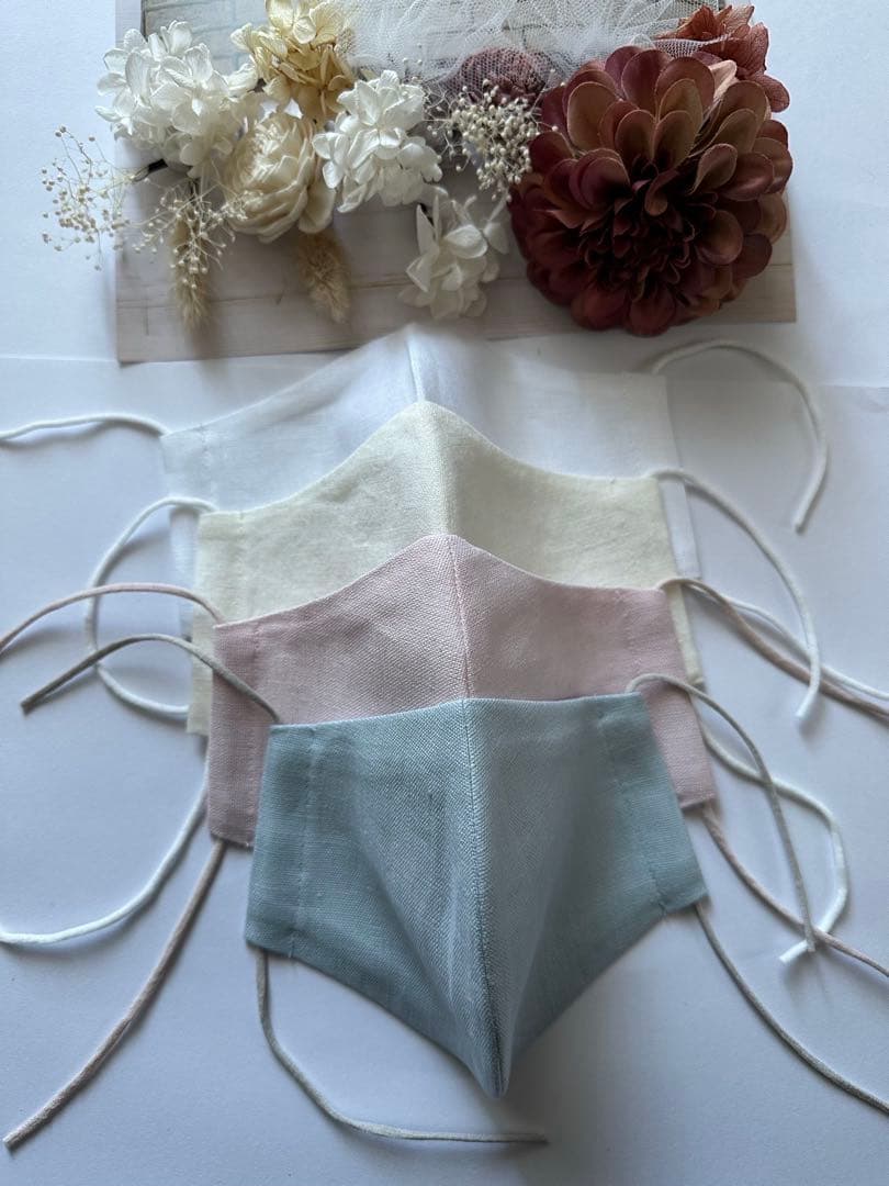 25542◇カラフル清潔系◇リネン100% ハンドメイドマスク 4枚セット