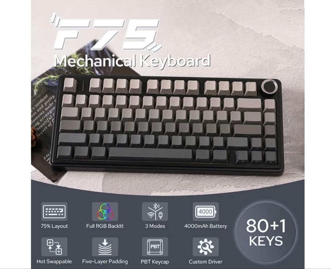 AULA F75メカニカルキーボード ブラックからグレー4000mAh