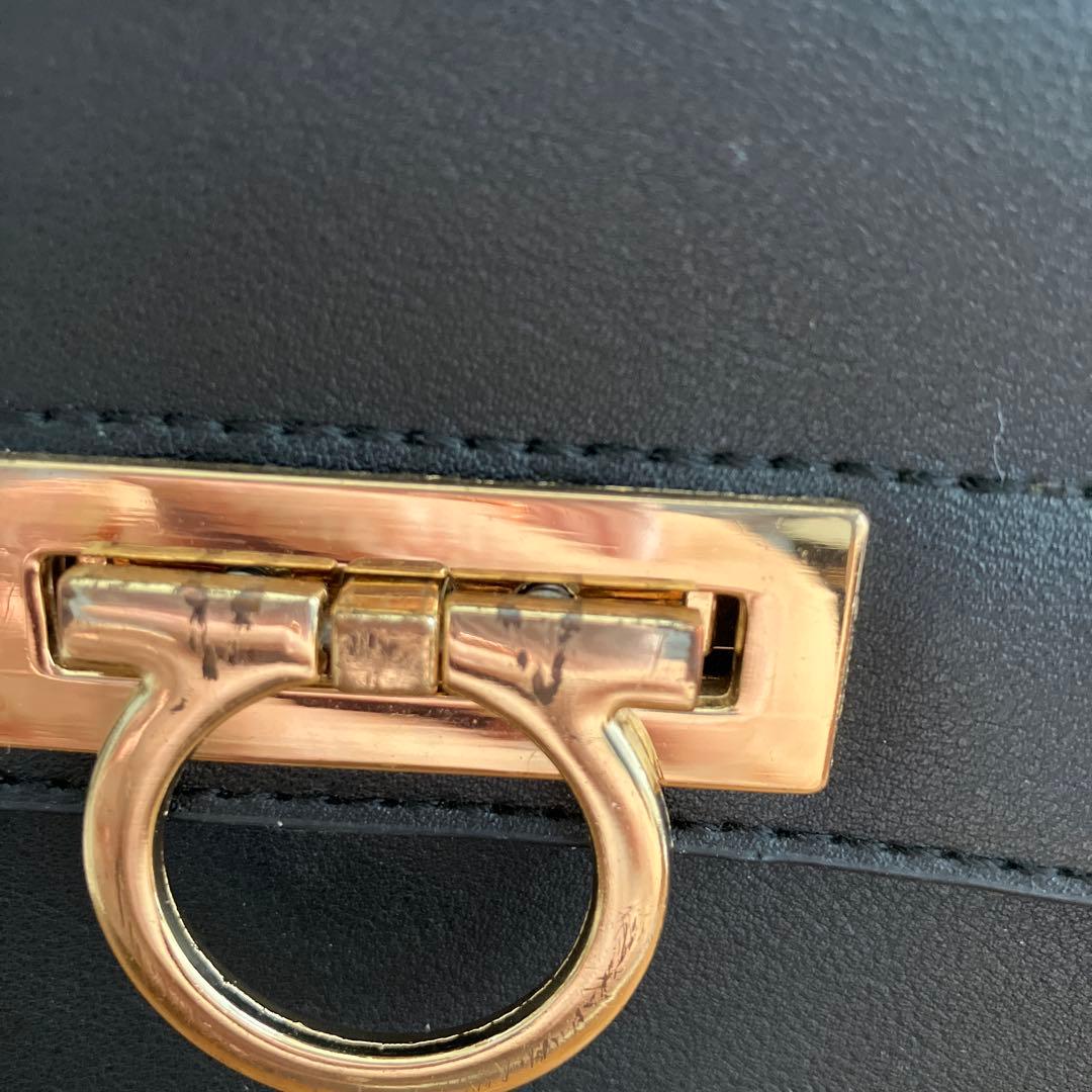 ★フィフスfifth高見え黒いハンドバッグ 金具付きショルダーストラップ付き★