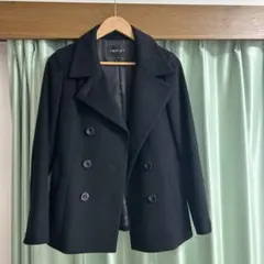 【インディヴィ】INDIVI ショート丈コート フレア 毛混紡 くるみボタン 黒