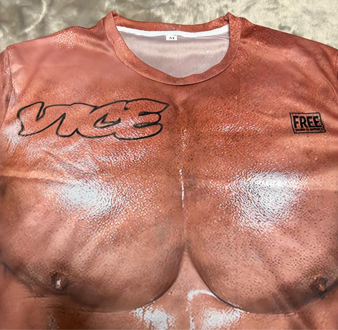【新品未使用】リアル筋肉Tシャツ(文字あり) M 夏の盛り上げアイテム!