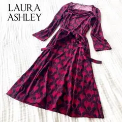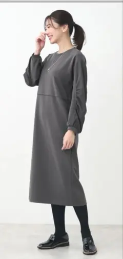 リフレフト バーガンディ 七分袖 フレア ロングワンピース ワインレッド