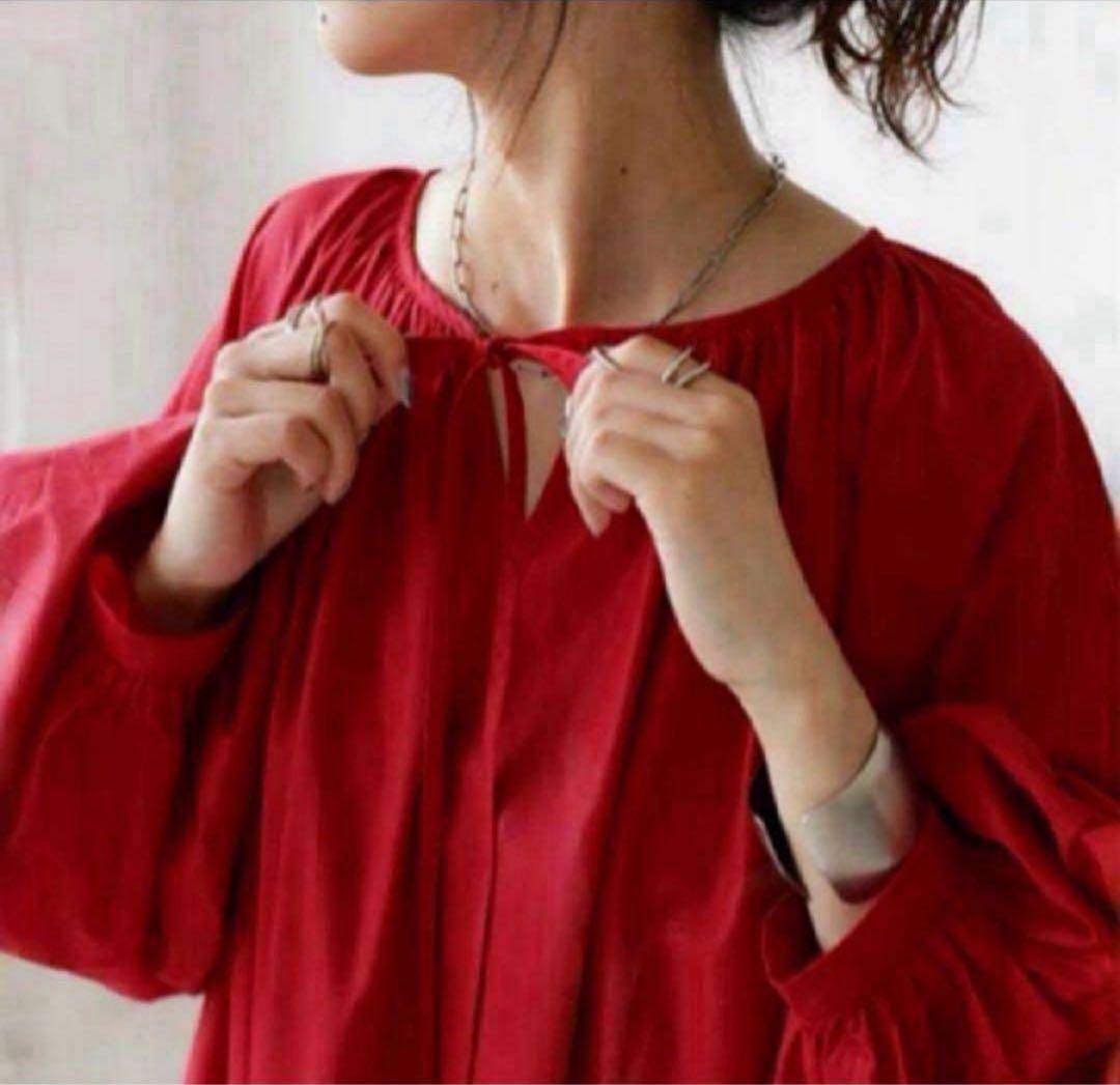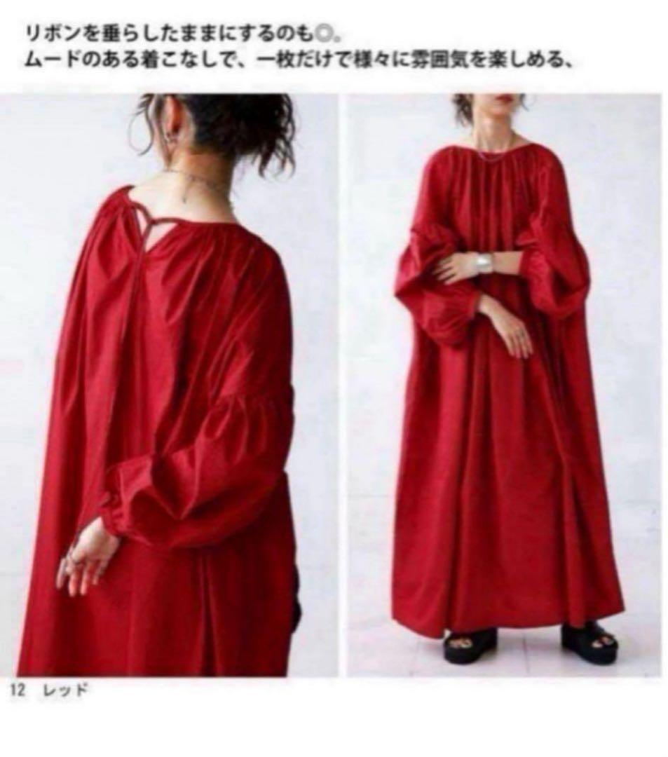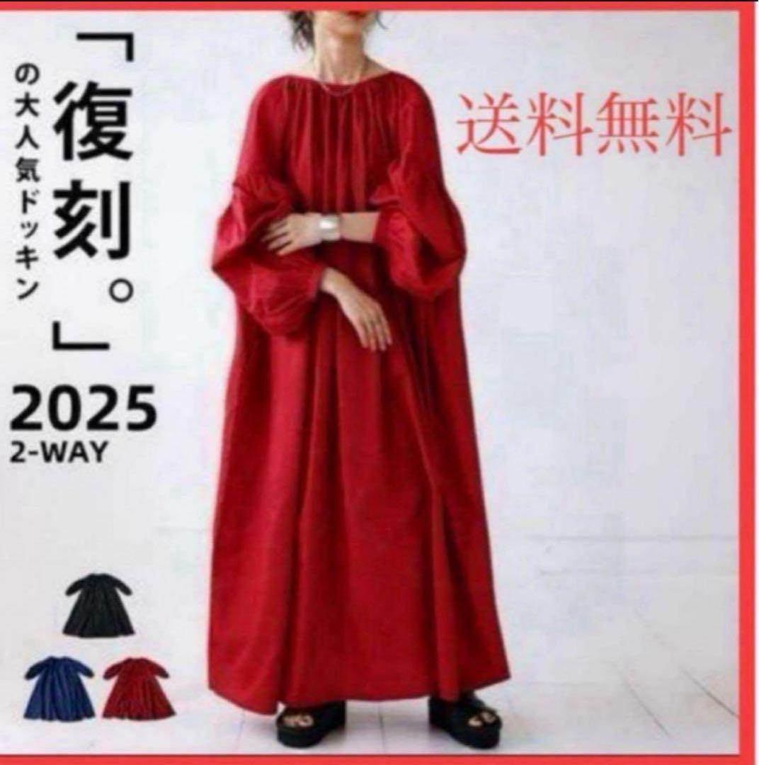 [数量限定]ワンピース 前後2wayボリュームスリーブレッドゆったり体型カバー