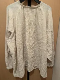 アイボリー 前開きビッグシルエットギャザー長袖シャツ