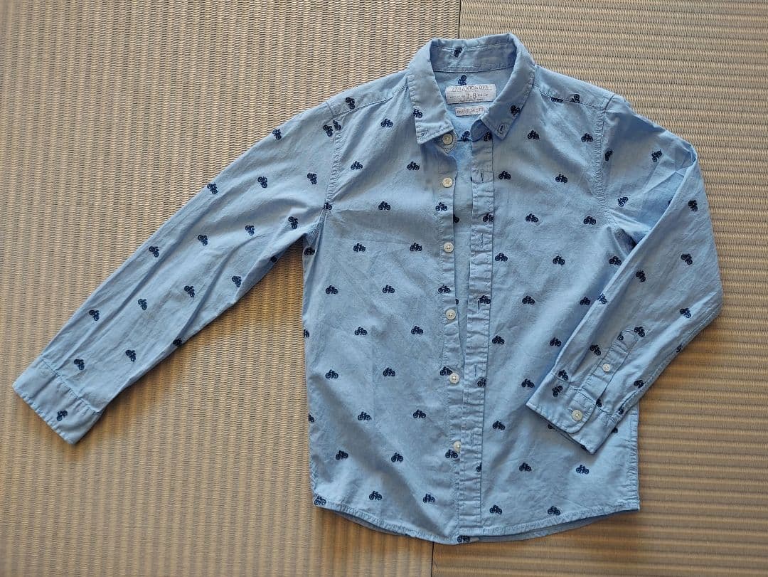 水色 自転車柄 長袖シャツ 7-8歳