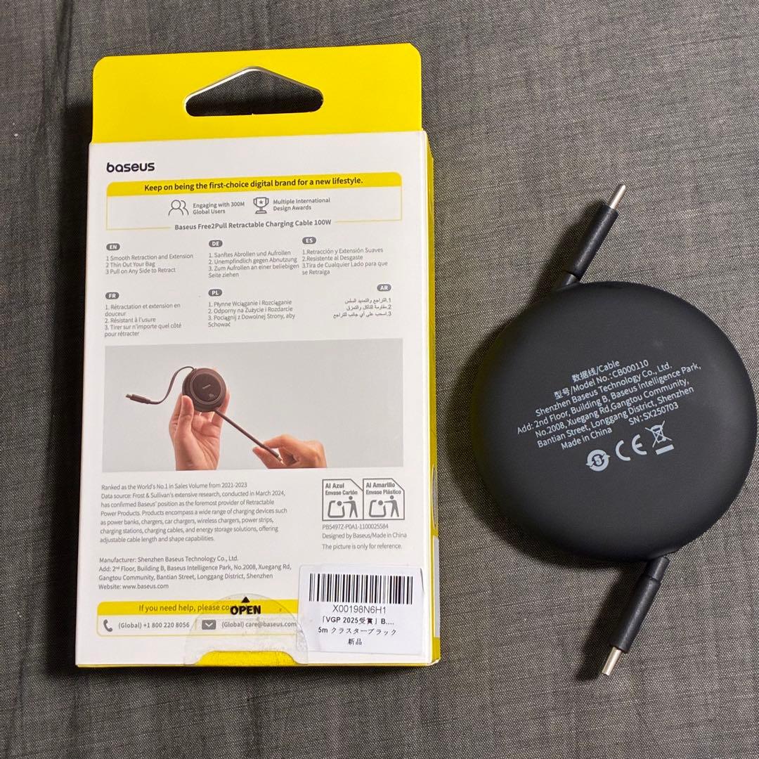 Baseus Free2Pull リトラクタブル充電ケーブル 1.5m巻き取り式