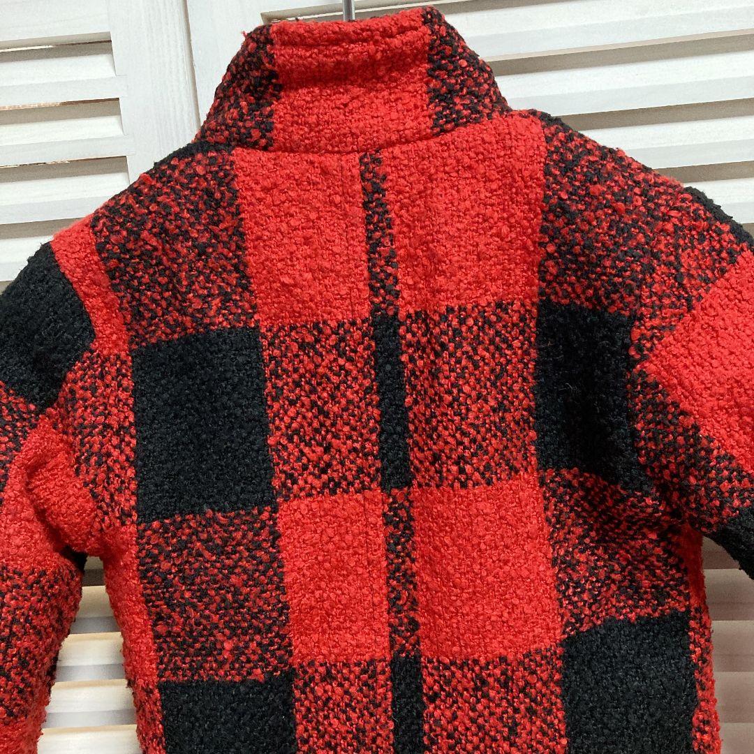 PINNUOFASHON バッファローチェック柄コート 赤×黒 モコモコ キッズ